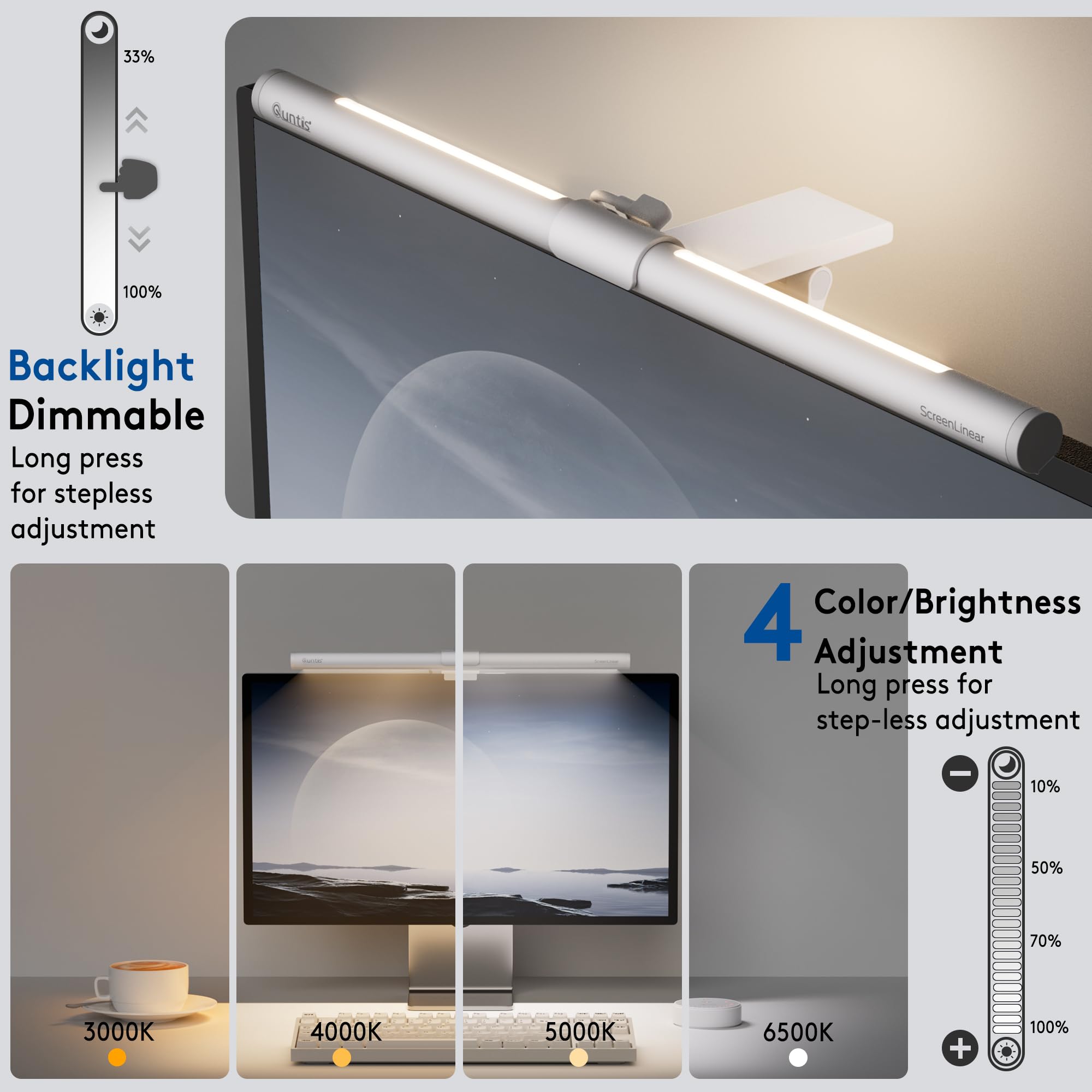 Quntis Monitor Lampe Weiss mit Hintergrundbeleuchtung Fernbedienung 40cm Curved Monitor Light Bar Augenschutz Bildschirmlampe LED für weisse helle Computer Schreibtische, Bürolampe für Home Office