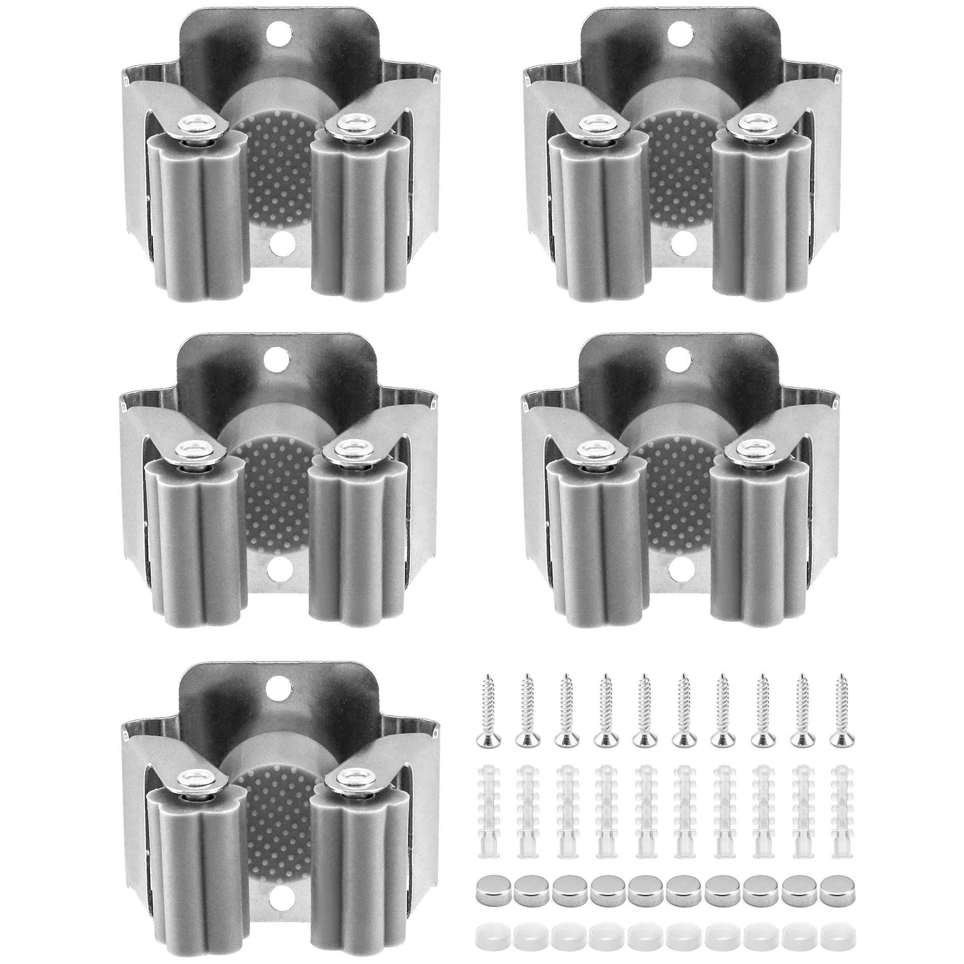 QWORK® 5 Stück Besenhalterung, Edelstahl Gerätehalter, Gartengeräte Aufhängung, für Badezimmer, Küche, Büro, Schrank, Garten, Garage