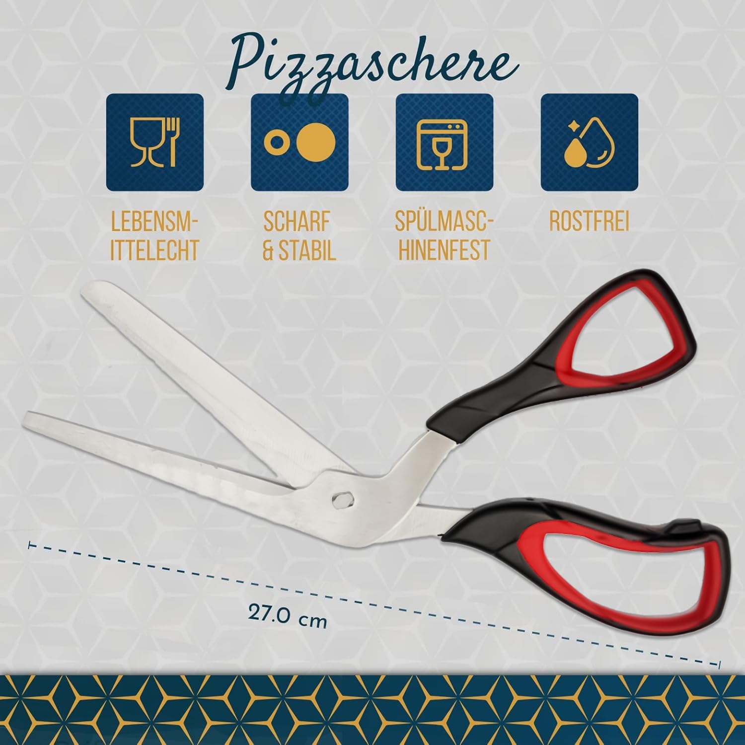 Raafi lebensmittelechte, scharfe Pizzaschere, schneidet Pizza, ohne die Beläge zu verschieben. Pizzaschneider Spülmaschinenfest, weicher Griff und multifunktionale Küchenschere, 27 cm lang