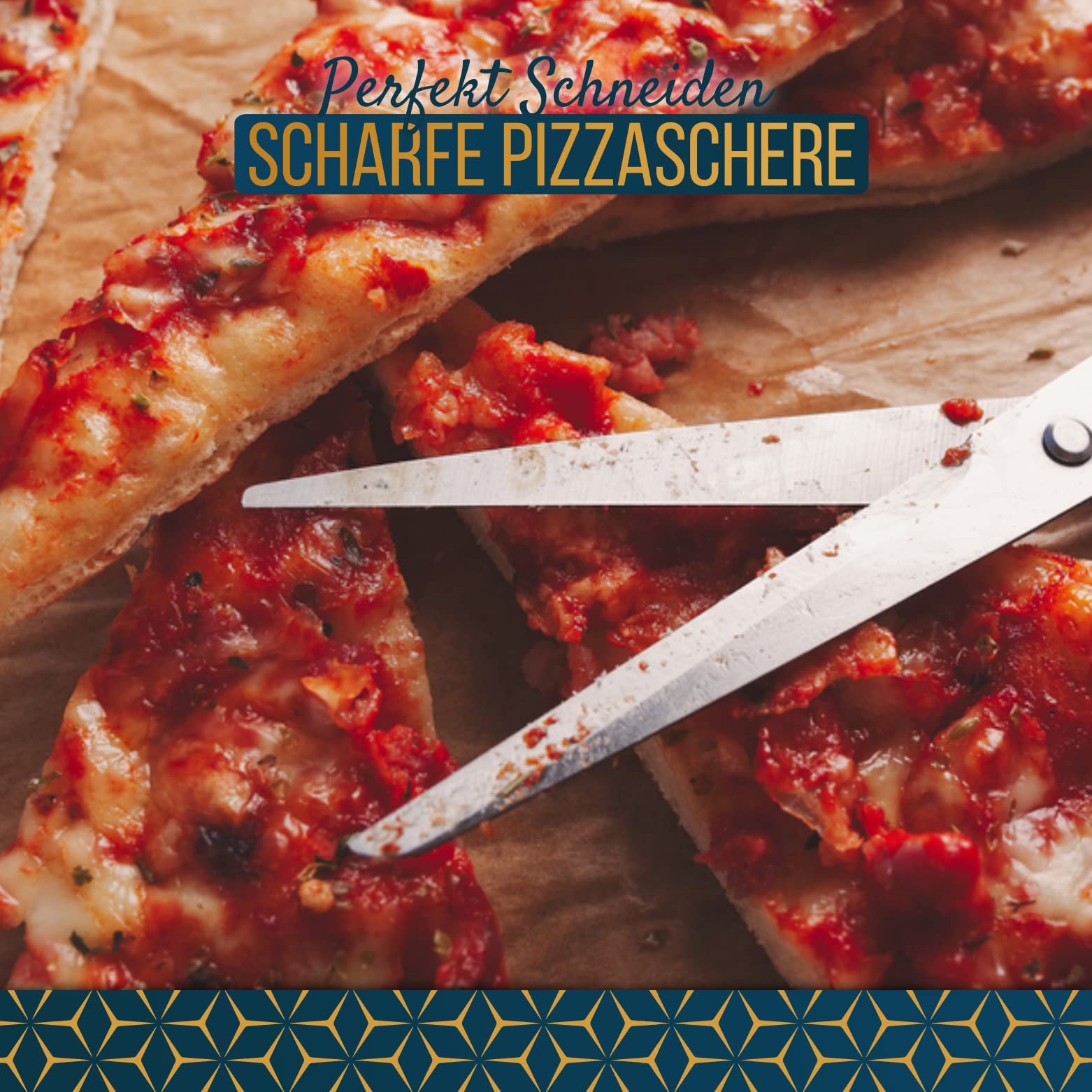Lassen Sie Ihren Pizzaabend nicht zu einer Katastrophe werden. Mit dieser Schere können Sie diesen köstlichen Belag leicht durchschneiden, ohne eine Sauerei zu machen. Egal, ob Sie Anfänger oder erfahrener Pizzaliebhaber sind, diese Schere ist ein Muss für Ihr Küchenarsenal. Machen Sie sich bereit, jedes Mal perfekt geschnittene Pizzen zu geniessen.