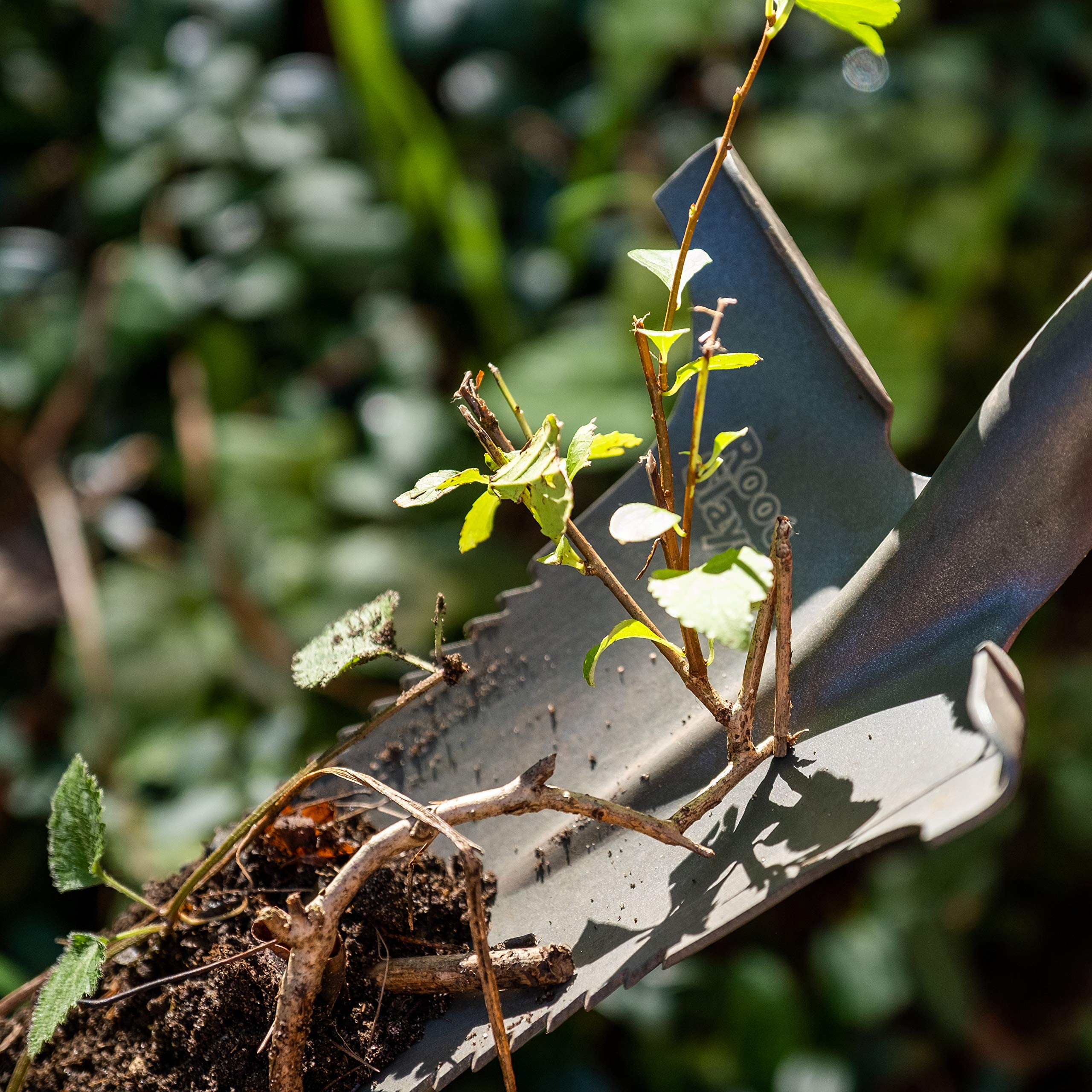 Compact & portable, the root Slayer nomadic revolutionizes your gardening experience. This multi-purpose tool excels in small spaces, raised beds, & campgrounds, slicing through sod & small roots with exceptional ease. The Nomad's blade is 70% The size of the original root Slayer, ensuring lightweight usability without sacrificing sharpness or strength. The "inverted V" Blade & root-cutting ripsaw teeth eliminate the need for hatchets & pry-bars; use while camping, metal detecting, weeding, & similarly tricky jobs.