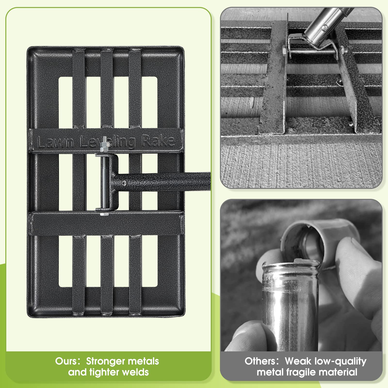 Rasen-Nivellierharke, 43,2 x 25,4 cm, Rasen-Nivellierwerkzeug für Rasenflächen, mit ergonomischem Griff, robuste Nivellierrechen für Rasen, Hof, Garten, Golfplatz, einfache Ebene, Boden, Sand