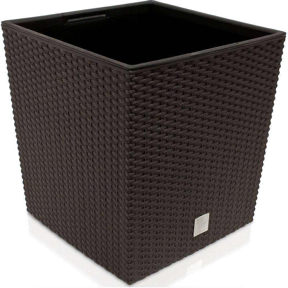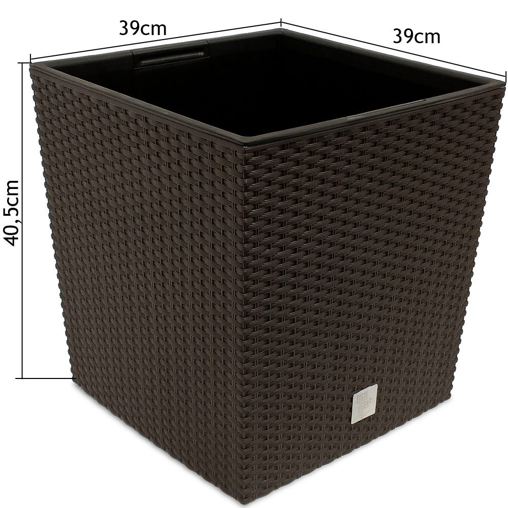 Elegant, modern und mit praktischem herausnehmbarem Einsatz: der Blumenkasten Rato Low ist das ideale Pflanzgefäss. Das moderne Rattan Design erlaubt das Aufstellen auf der Terra-sse oder auch im Wohnbereich und bietet mit seiner wunderschönen Optik eine Abwechslung und optimale Basis für Ihre Pflanzen. Das verwendete Material hat eine wetterfeste Qualität, das garantiert hohe Haltbarkeit und Farbbeständigkeit. Die Blumentöpfe werden mit einem Kunststoffeinsatz geliefert, so da-ss Sie nicht so viel Erde beim Pflanzen benötigen. Durch das grosse Fa-ssungsvermögen können beliebig viele Pflanzen dahin gepflanzt werden. Dank seiner idealen Masse findet dieser moderne Pflanzgefäss insbesondere auf dem Balkon Verwendung.