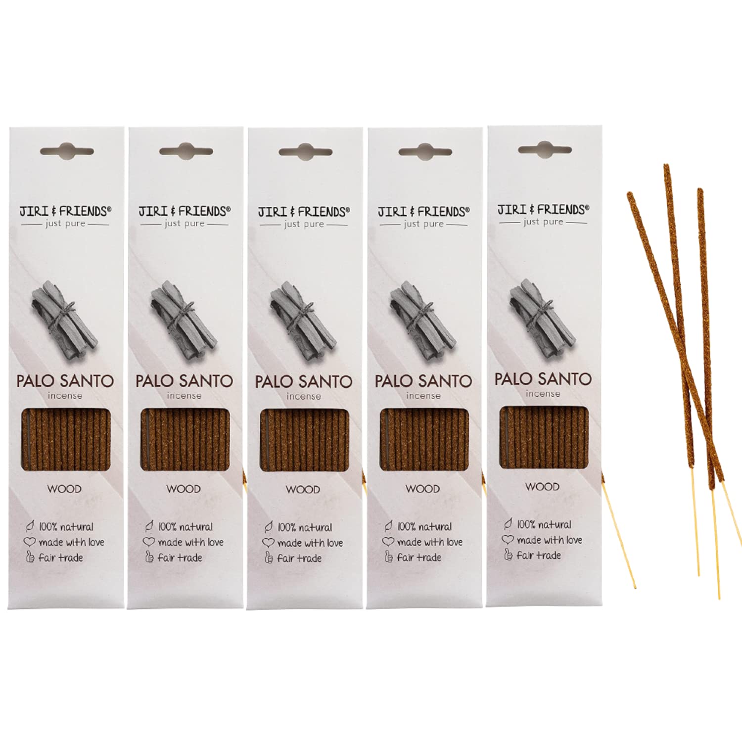5-Pack Räucherstäbchen Palo Santo Heiliges Holz Räucherholz Jiri and Friends 100% Natürlich 15 Stuck Natural Incense Palo Santo Fair Trade Räucherwerk
