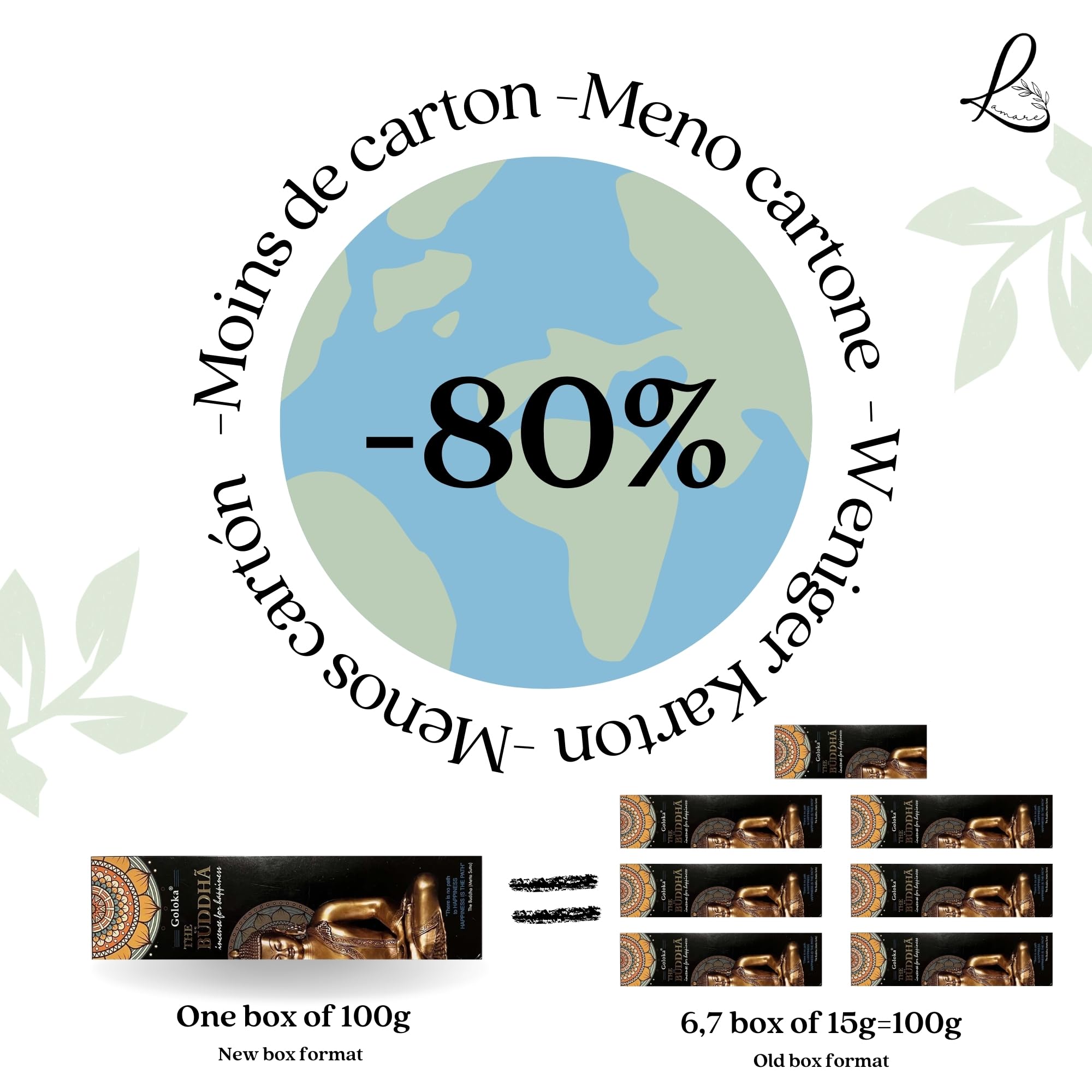 Räucherstäbchen Buddha – 1 Packung mit 100 g (70–90 Stäbchen) – Aromatherapie – Meditation – Yoga – Packaging Eco-Friendly