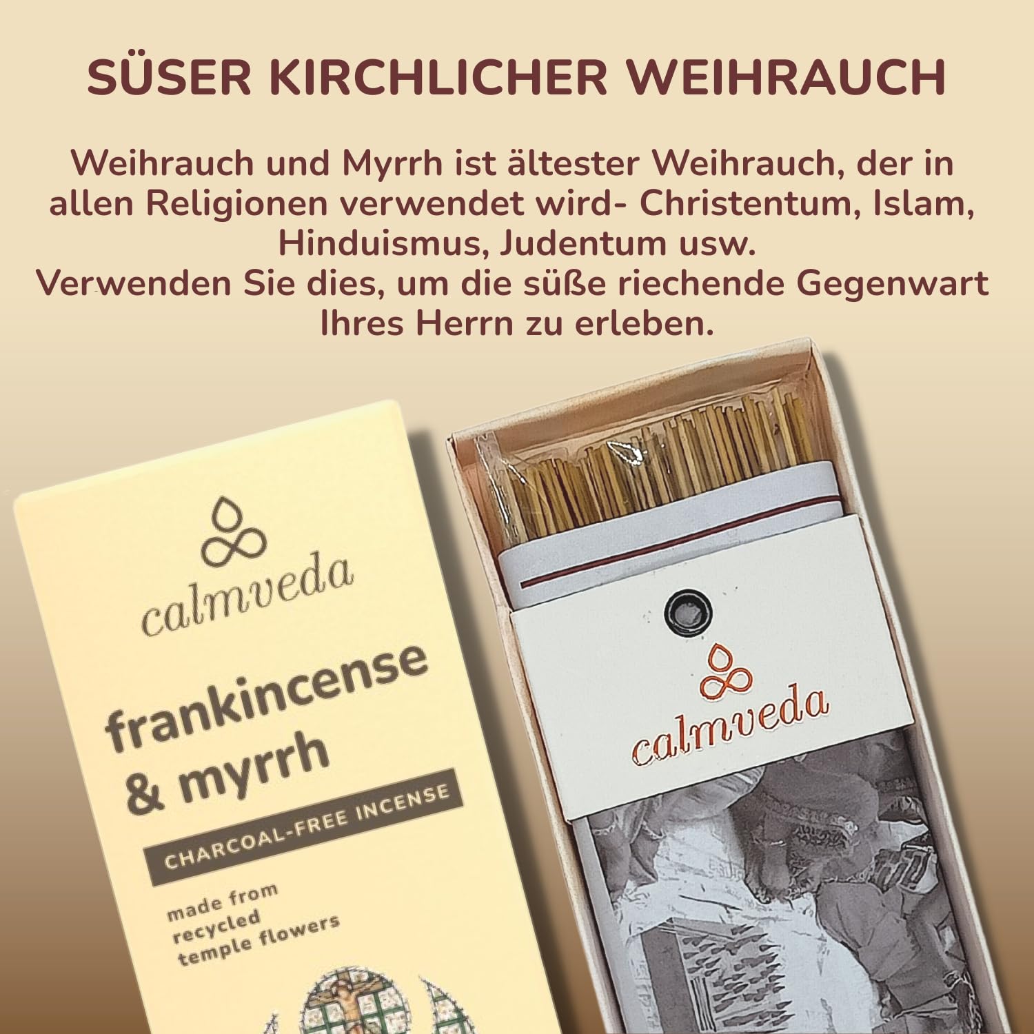 Frankincense Räucherstäbchen Weihrauch mit Myrrh - (80 weihrauch stäbchen) Kirche Räuchern, Recycelte Blüten | Weihrauch zum Räuchern | Räucherstäbchen Set mit räucherwerk