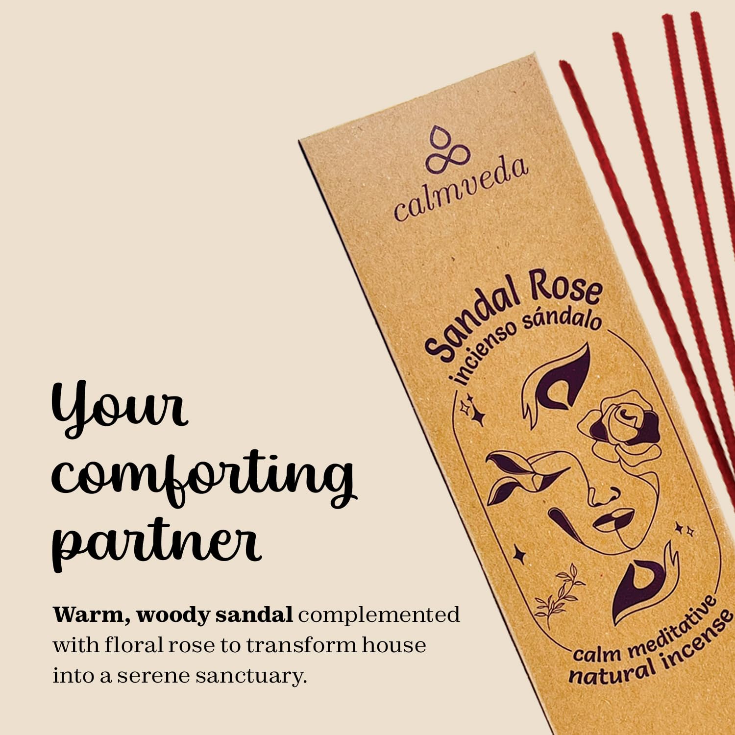 Natürliches Sandelholz räucherstäbchen mit Rose - (40+ weihrauch) Sauber, ohne Kohle, hergestellt aus recycelten Blumen | Süßes, holziges Aroma-Räucherstäbchen zur Beruhigung weihrauch zum räuchern