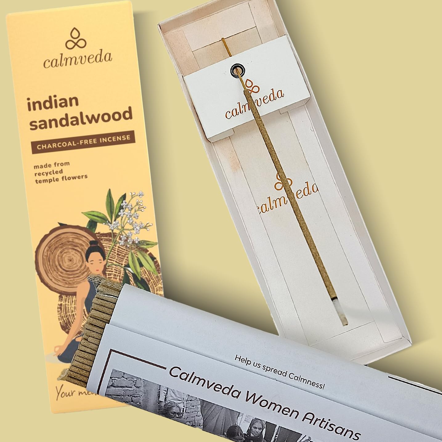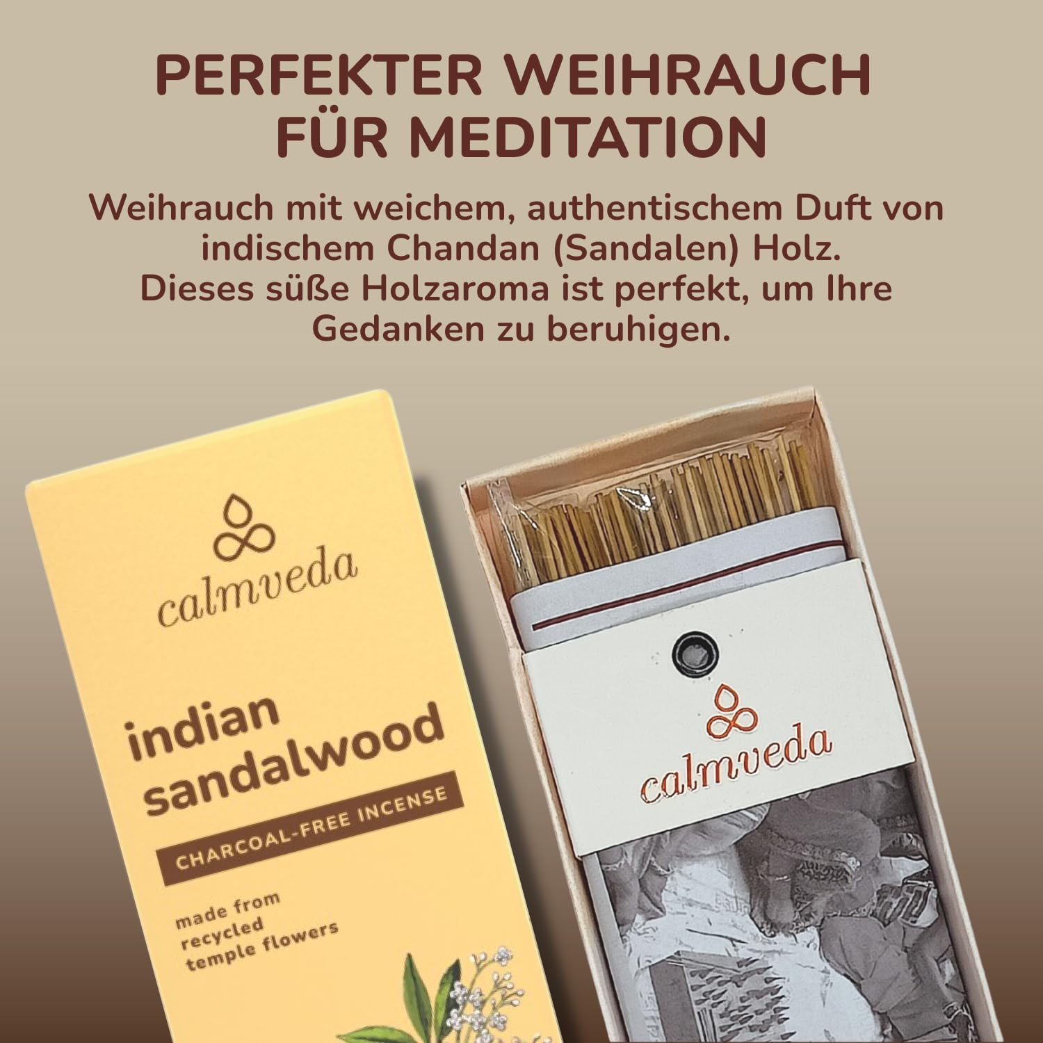 Indien Sandelholz Räucherstäbchen Bio qualität - (80 weihrauch stäbchen) Holzkohlefreies Räucherwerk aus Upcycled-Blumen |weihrauch zum räuchern, Sandalwood süss-holziger Meditations-Räucherstäbchen