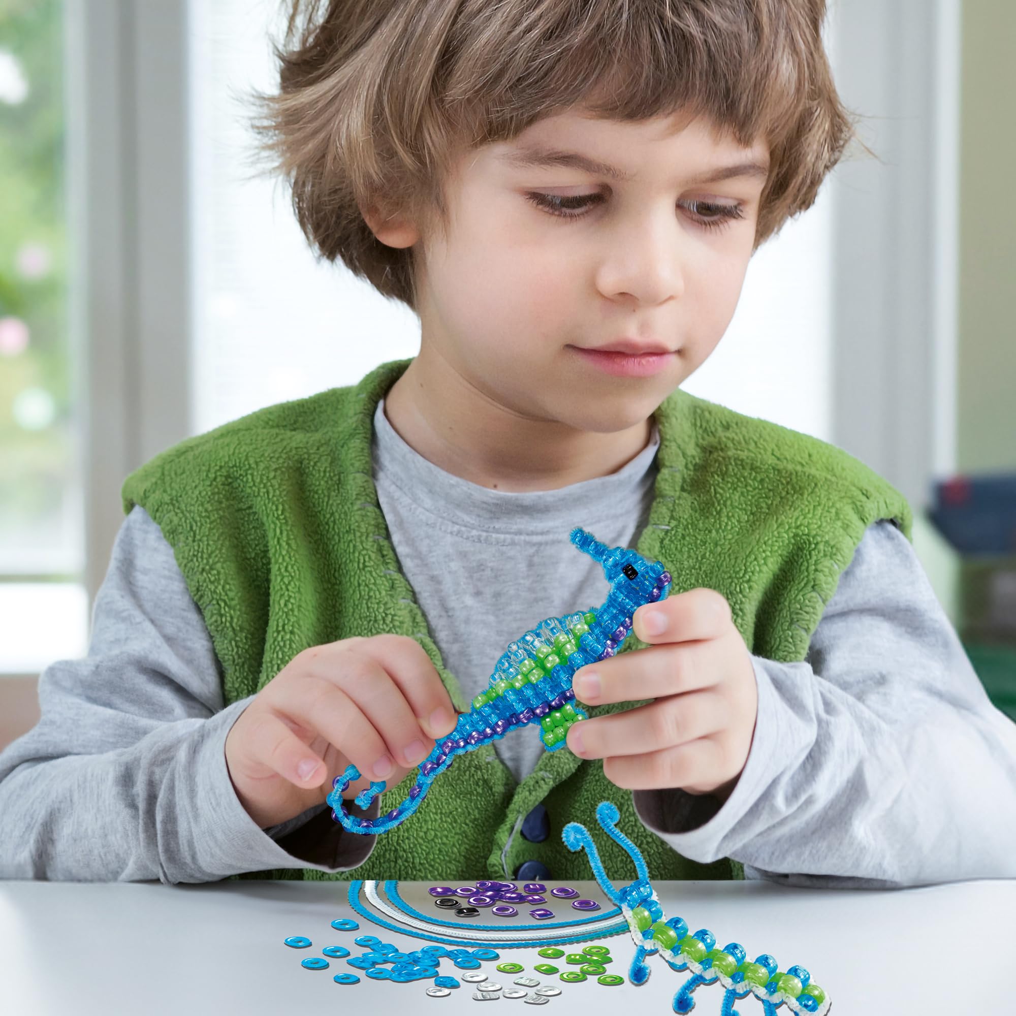 Aus den im Set enthaltenen bunten Perlen und Pfeifenputzern entsteht ein Seepferdchen und eine kleine Raupe. Kinder ab 6 Jahren können mit den Tierchen spielen oder sie als hübsche Deko verwenden