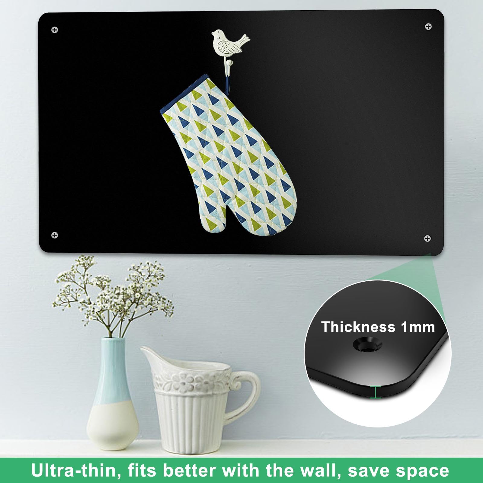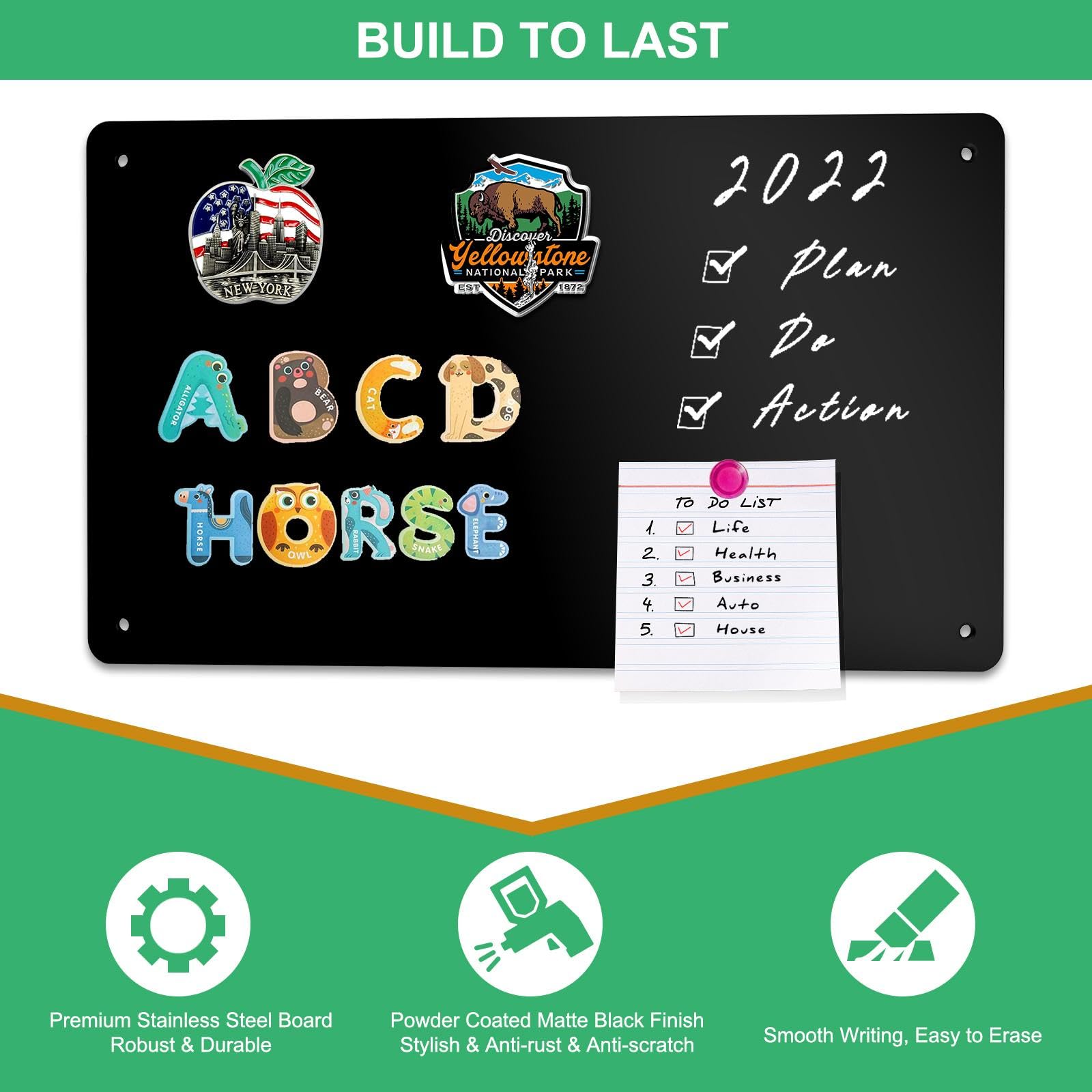 Raweao Schwarz Magnettafel aus Metall, 43.5x29x0.08cm Klein Magnethalter für Magnetische Souvenirs, Tickets, Karten für Zuhause, Küche und Büro (Schwarz - 2 Stück)