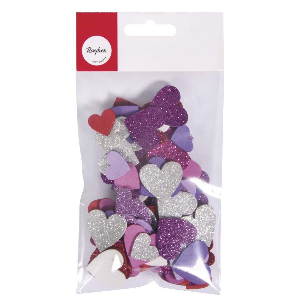 Rayher 30229000 Moosgummi Herzen Glitter, 3 cm ø, 100 Stück, selbstklebend, Farben gemischt, Glitter Schaumstoff Sticker, Moosgummi-Aufkleber Herz, zum Dekorieren