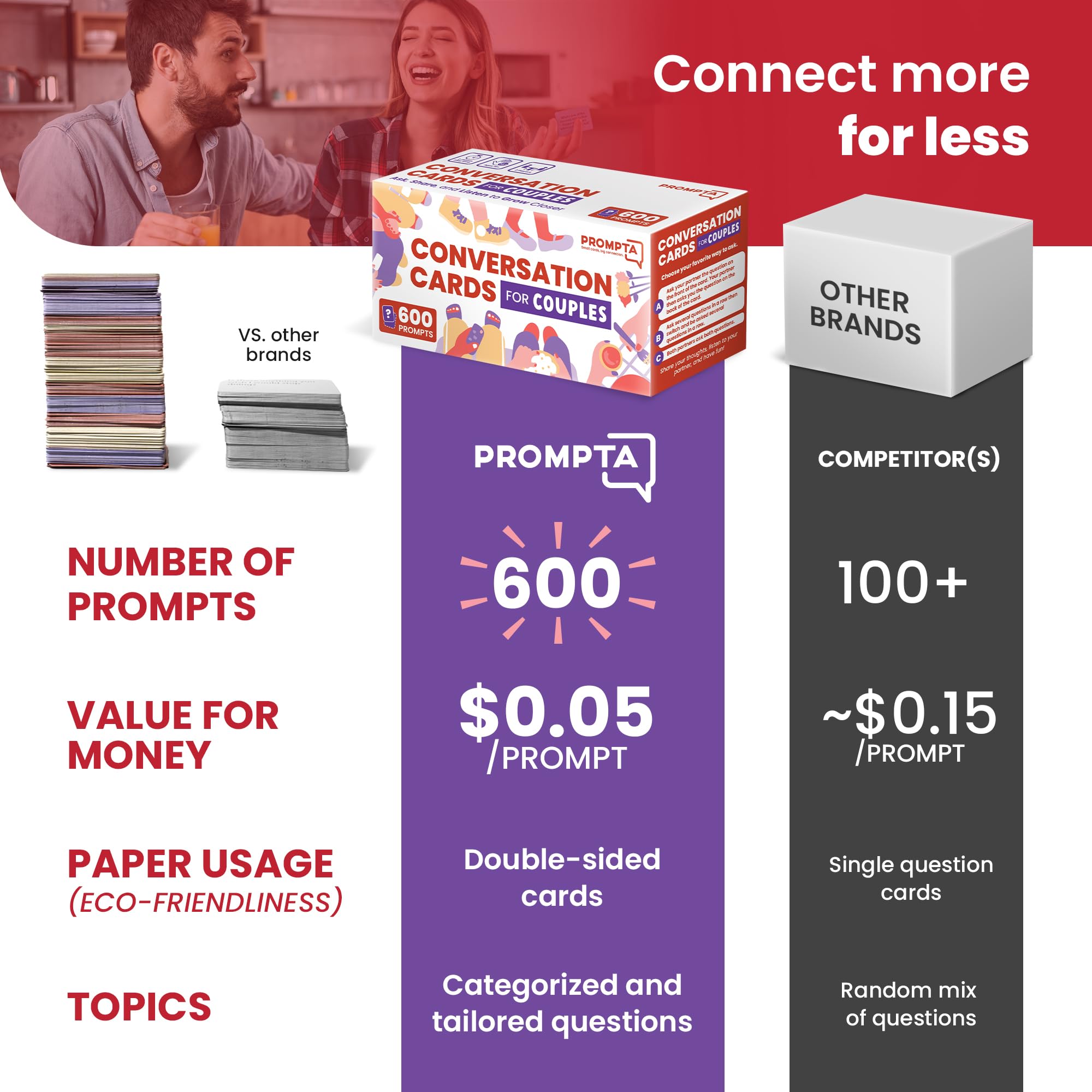 Rayliad 600 Gesprächskarten für Paare - Paare Spiele Beziehungsfragen - Kartenspiele für Paare - Gesprächsstarter für Date Night - Paare Spiel zum Verbinden und Sprechen - Paare Geschenke