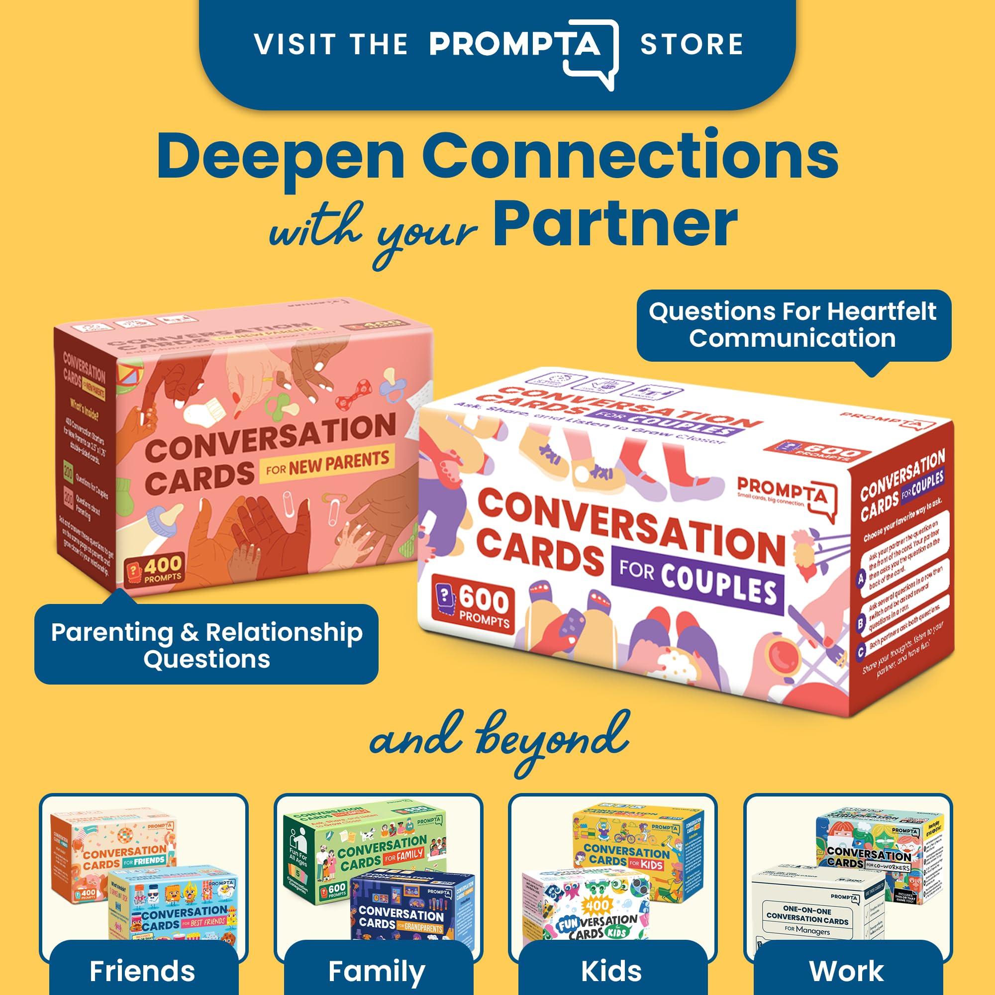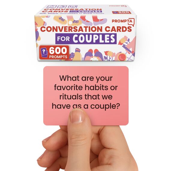 Das umfassendste Gesprächskarten für Paare Set aller Zeiten. Dieses Kartendeck enthält 600 Fragen, die Ihnen und Ihrem Partner helfen, sich zu verbinden und voneinander zu lernen. Sobald Sie die Antworten auf all diese Fragen kennen, sollten Sie Ihren Partner besser kennen als Sie fast alle anderen kennen. Sie werden dich im gleichen Masse kennen und du wirst Geschichten und Lebensdetails haben, mit denen du dich für immer verbinden kannst. 600 Fragen sind 2 bis 6 mal mehr Fragen als jedes andere Gesprächskarten-Set für Paare, so dass Sie sicher sein können, dass diese Karten viele Edelsteine und jede Menge Abwechslung haben werden. Tatsächlich wurden die Fragen aus über 3.000 Anfangsfragen verkleinert. Diese Karten wurden entwickelt, um für neue und langjährige Paare zu funktionieren. Wir haben unser Bestes getan, um Karten zu entfernen, die ähnliche Antworten hervorrufen könnten. Keine Fragen, die direkt über Ex gestellt werden! Farbcodierte Decks: Die 3 Decks sind farblich gekennzeichnet, sodass Sie die Fragen stellen können, für die Sie Lust haben. Oder lebe auf der wilden Seite und mische die Karten einfach zusammen. Creme - 200 leichte, about-me Typ-Fragen, die sich für einen widerwilligen oder ruhigen Partner nicht invasiv oder seltsam anfühlen. Blau - 196 tiefere Fragen Diese Karten haben mehr Fragen zu Ihrer Beziehung, haben aber immer noch viel über Erinnerungen, Träume und Vorlieben / Abneigungen. Rot - Mischung aus 202 tiefen, seelensuchenden Lebens- und Beziehungsfragen und leichteren Fragen, um die Stimmung glücklich und kooperativ zu halten. Inhalt und Details: 600 Fragen für Paare: 6,3 x 4,4 cm, doppelseitig und farbcodiert. Aufbewahrungsbox und Trennkarte Verbinden! Verbinde dich und verbringe eine gute Zeit miteinander, während du Hör- und Teilfähigkeiten Ideal für Jahrestagsgeschenke, Valentinstagsgeschenke, Mahlzeiten, Autoreisen, Gespräche zum Schlafengehen und Verabredungen.