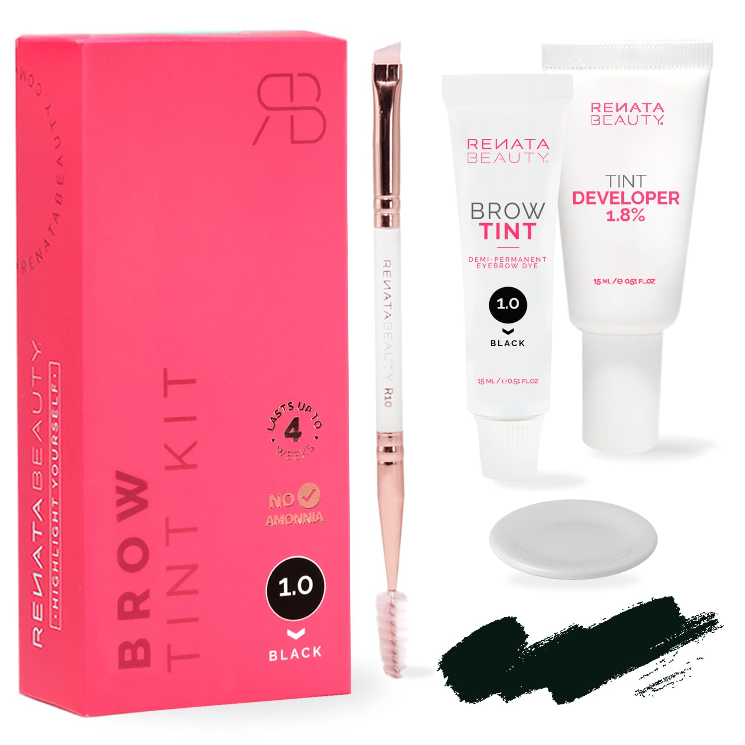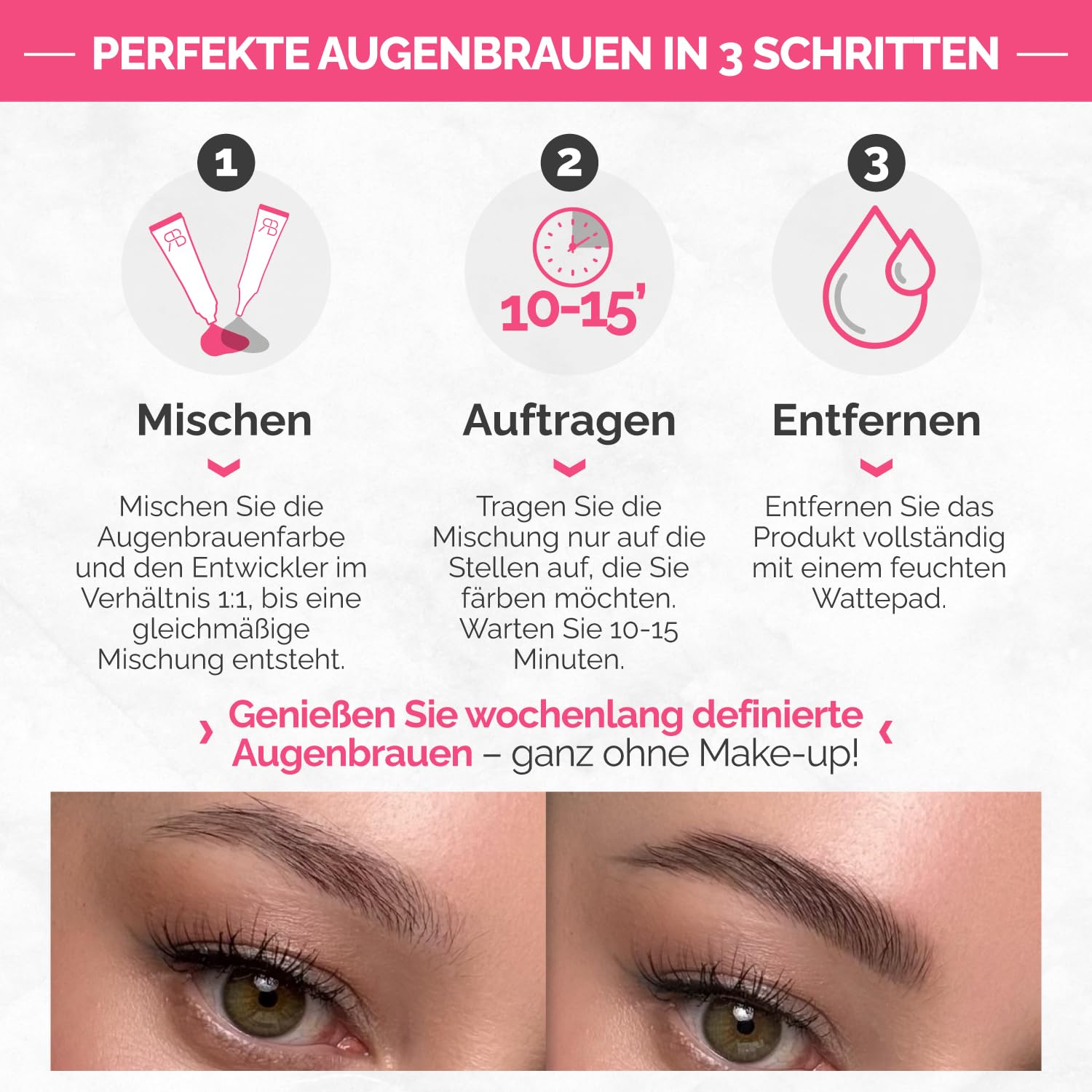 RB RENATA BEAUTY Augenbrauenfarbe Set – Brow Färbeset inkl. Entwickler & Stylingbürste – Augenbrauen Färbeset – Eyebrow Dye Kit mit bis zu 4 Wochen Halt – Brow Tint für Natürlichen Look [Schwarz]