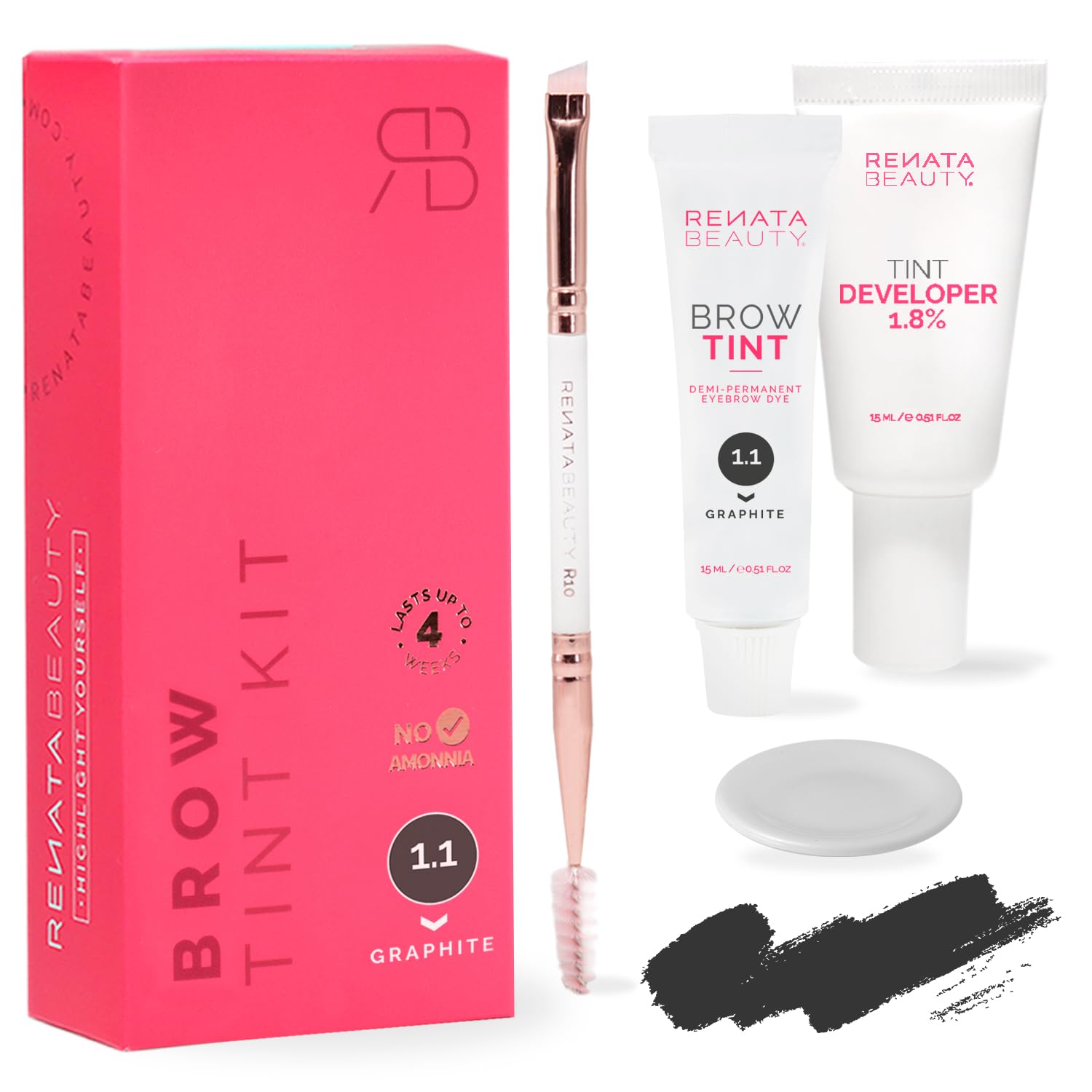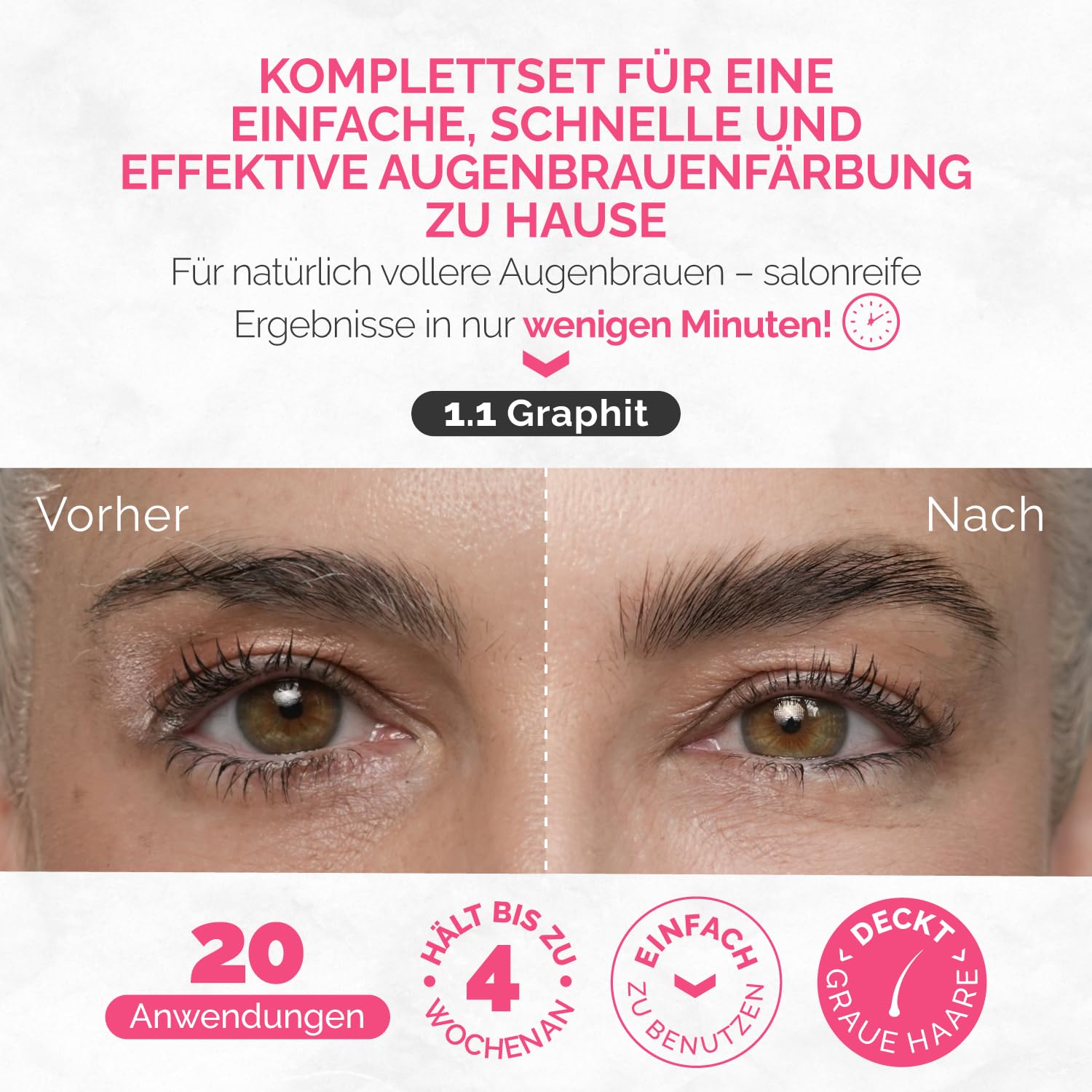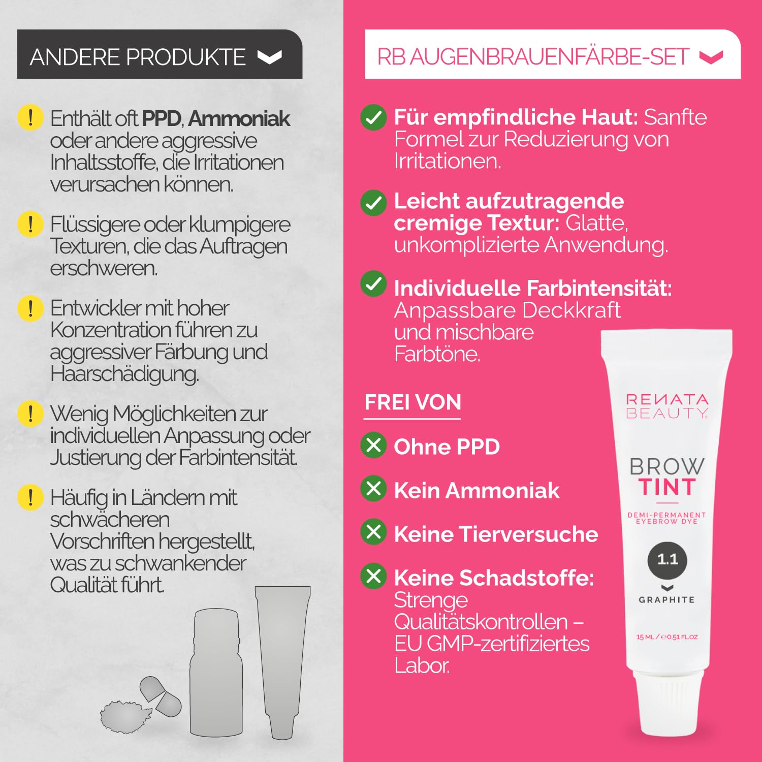 RB RENATA BEAUTY Augenbrauenfarbe Set – Brow Färbeset inkl. Entwickler & Stylingbürste – Augenbrauen Färbeset – Eyebrow Dye mit bis zu 4 Wochen Halt – Brow Tint für Natürlichen Look [Graphit-Grau]