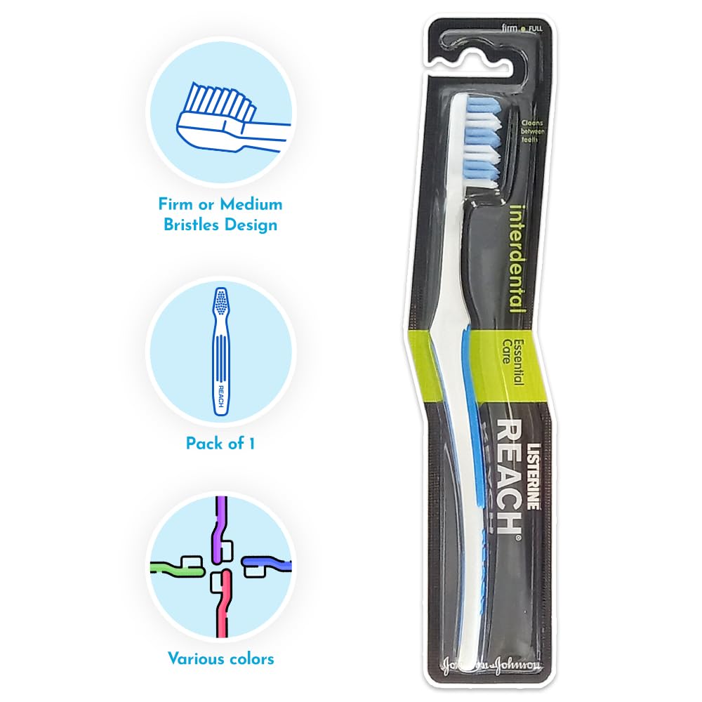 REACH Essential Care Interdental Mittel Zahnbürste, Einzelpackung x 4, voller Kopf Medium Toothbrush Hard Borsten Handzahnbürsten, Vielzahl von Farben Multipack, Täglich Oral Emaille Zahnpflege