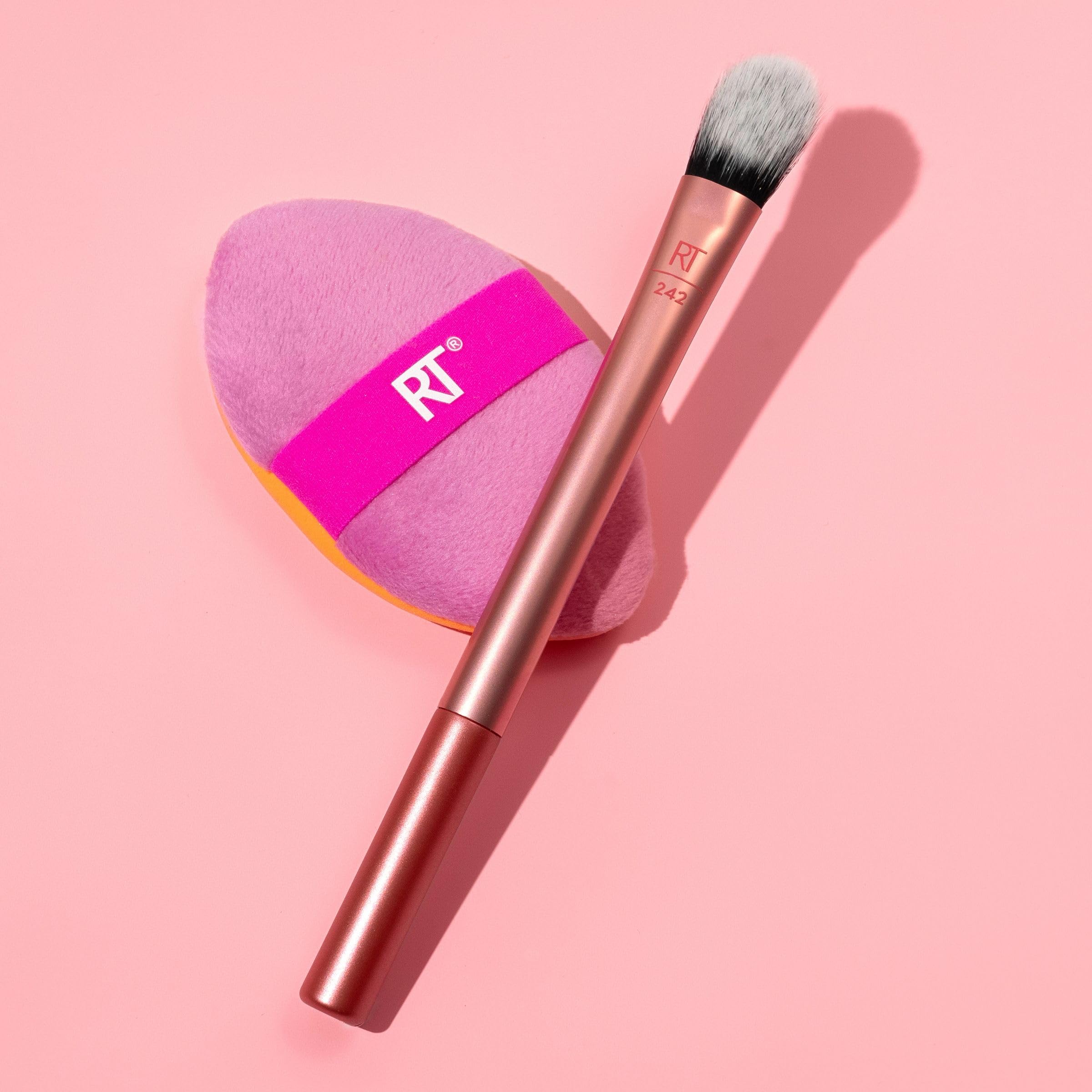 Das Set besteht aus dem RT 242 Kitten Paw Concealer Pinsel und der Miracle 2-in-1 Puderquaste. Beide Tools wurden speziell entwickelt, um ein ebenmässiges, sauberes und langanhaltendes Finish zu erzielen – von der gezielten Abdeckung bis zum Fixieren.