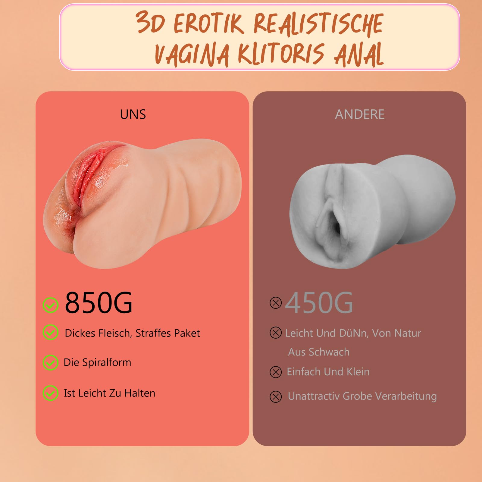 Realistische Masturbator, Sexspielzeug für Männer, 855G Schwergewichts Masturbator, Taschenmuschi, Realistischer grosser Riemen, 3D-Vagina, Klitoris, Anus, tragbarer 3D Masturbator erotisches 2025