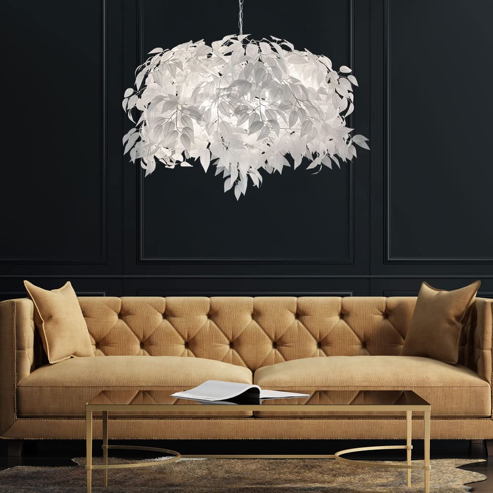Reality Leuchten Pendelleuchte Leavy R10464001, Metall Nickel matt, Schirm Kunststoff weiss, 4 x E14, 70 x 70 x 150 cm