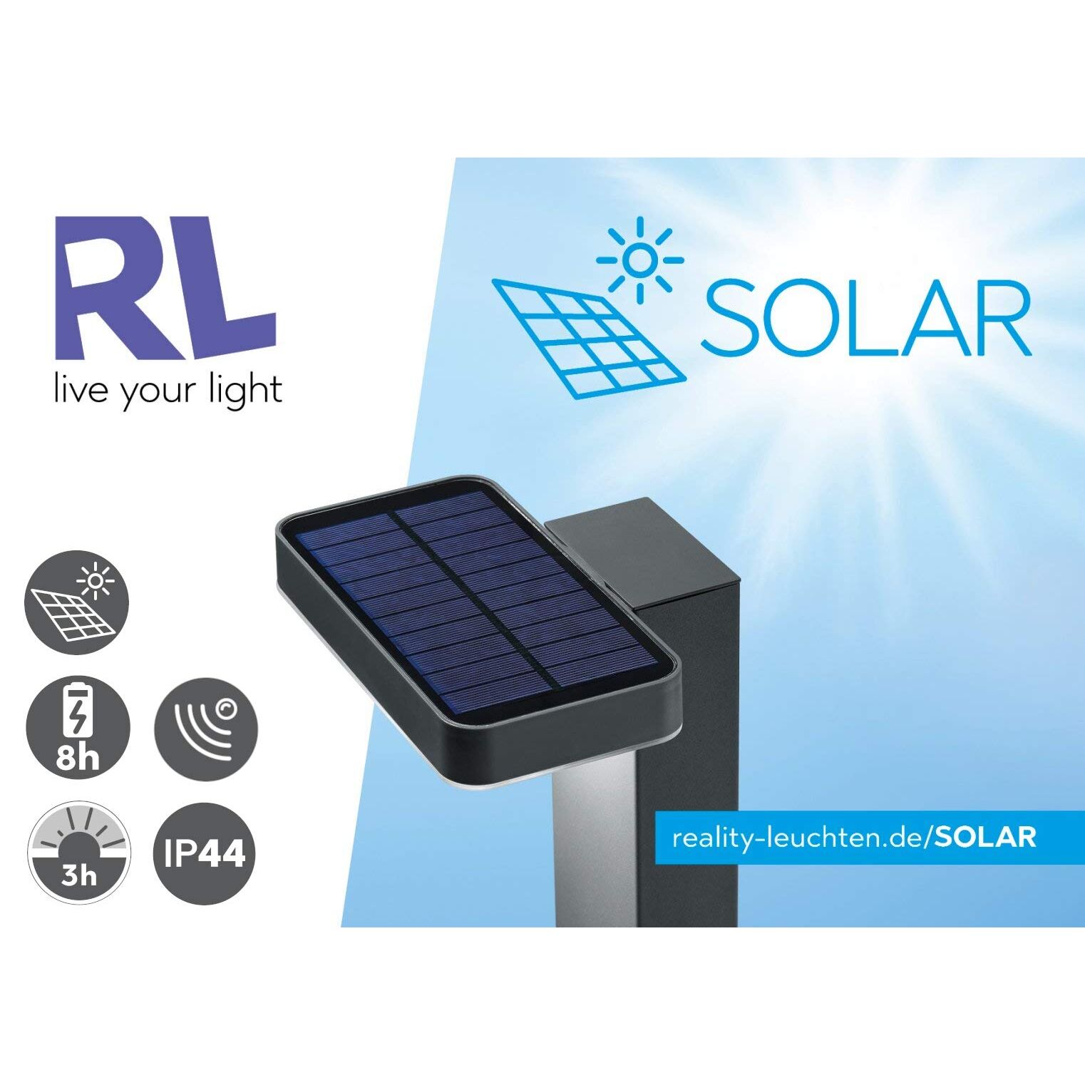 Reality Leuchten LED Solar Aussenwandleuchte Salta R22231142, Kunststoff anthrazit, inkl. 3 Watt LED, Bewegungsmelder