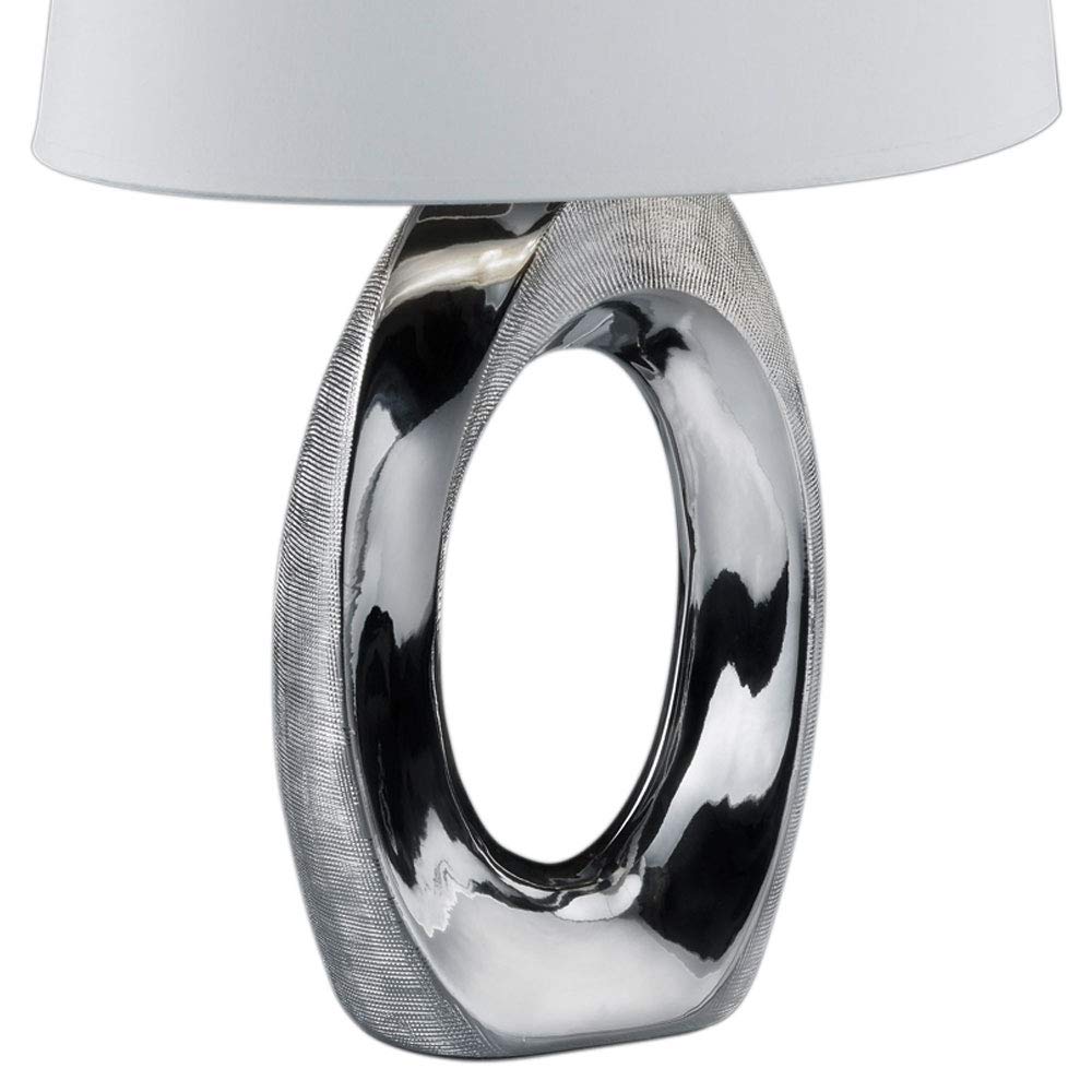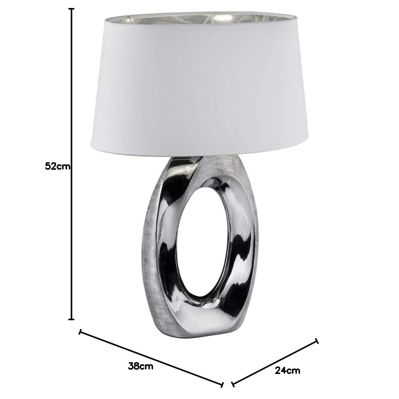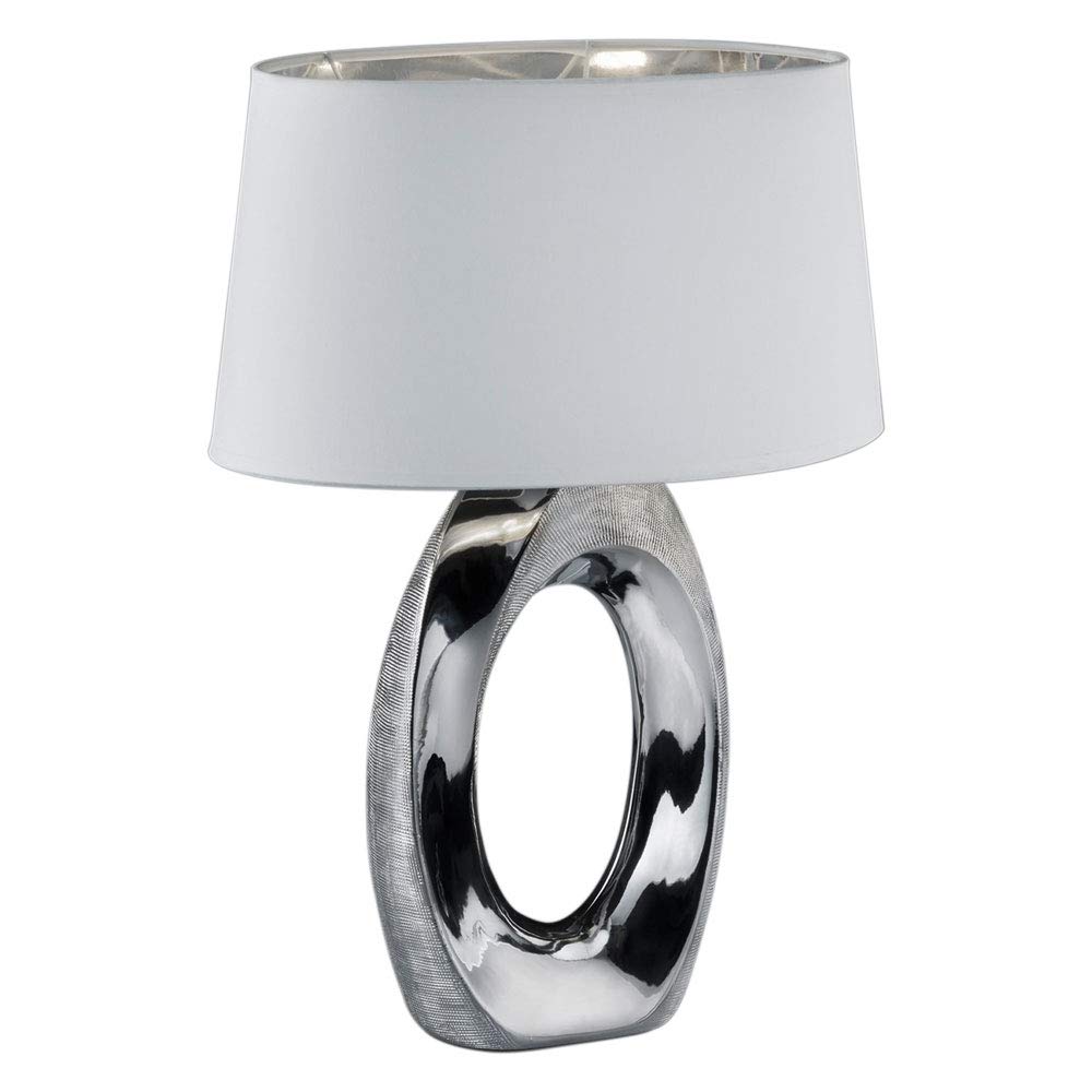 Reality Leuchten Taba R50521089 Tischleuchte, Keramik, Stoffschirm Weiss/Silberfarbig, Höhe 52cm