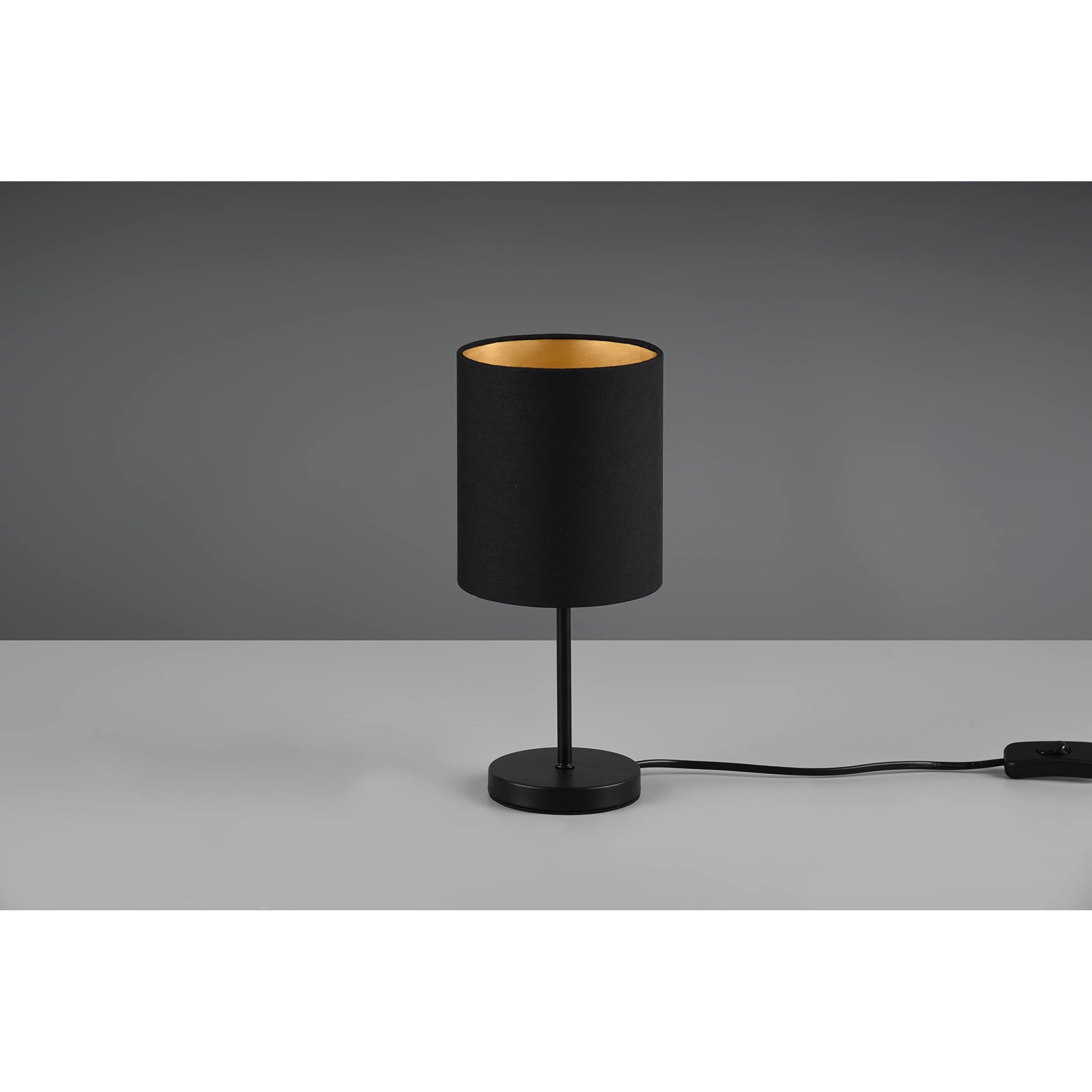 Reality Leuchten Tischleuchte Jerry R50491080, Metall Schwarz matt, Stoffschirm schwarz/goldfarbig, exkl. 1x E14