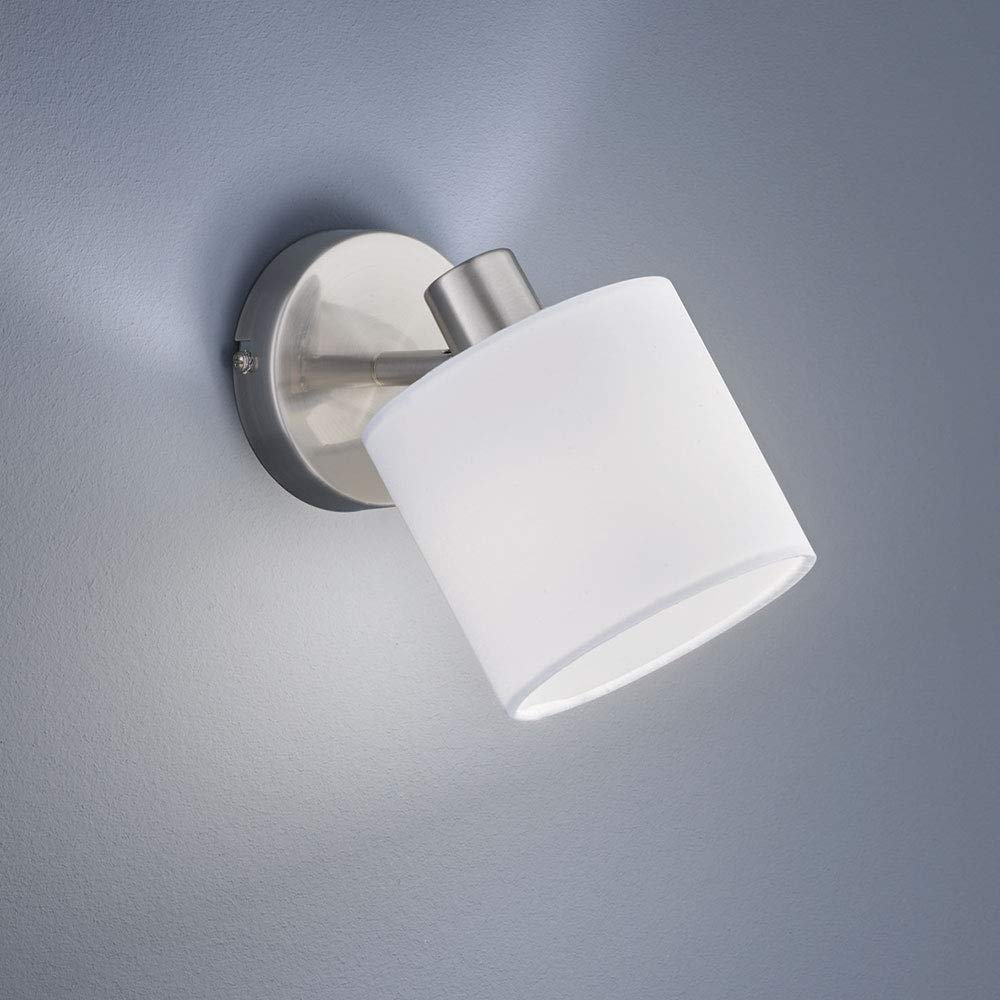 Reality Leuchten Tommy R80331001 Wandspot, Nickel Matt, Stoffschirm Weiss