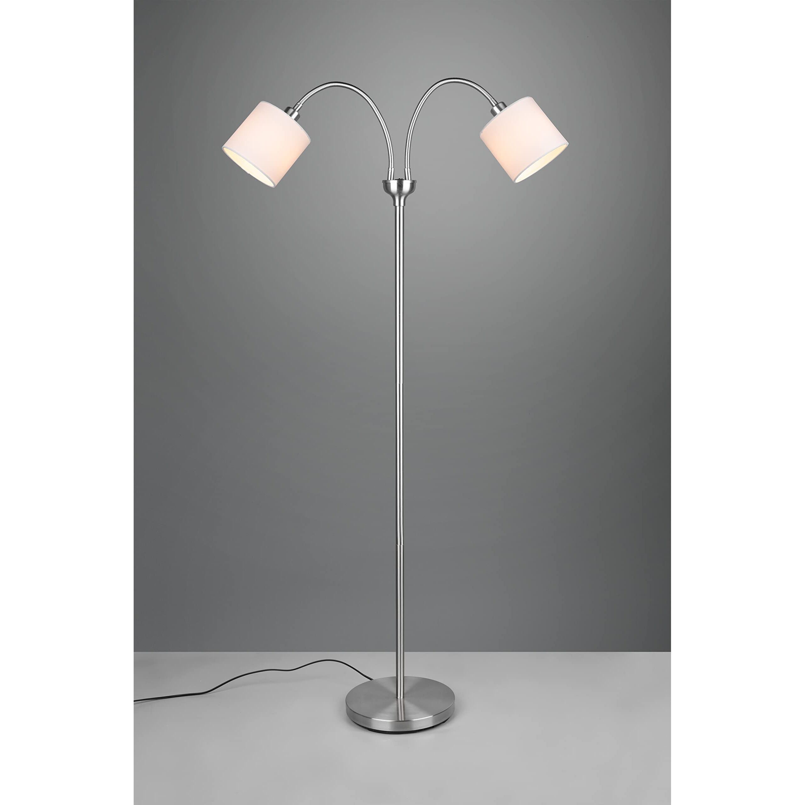Reality Leuchten Stehleuchte Tommy R46332001, Metall Nickel Matt, Stoffschirm Weiß, Exklusiv 2x E14