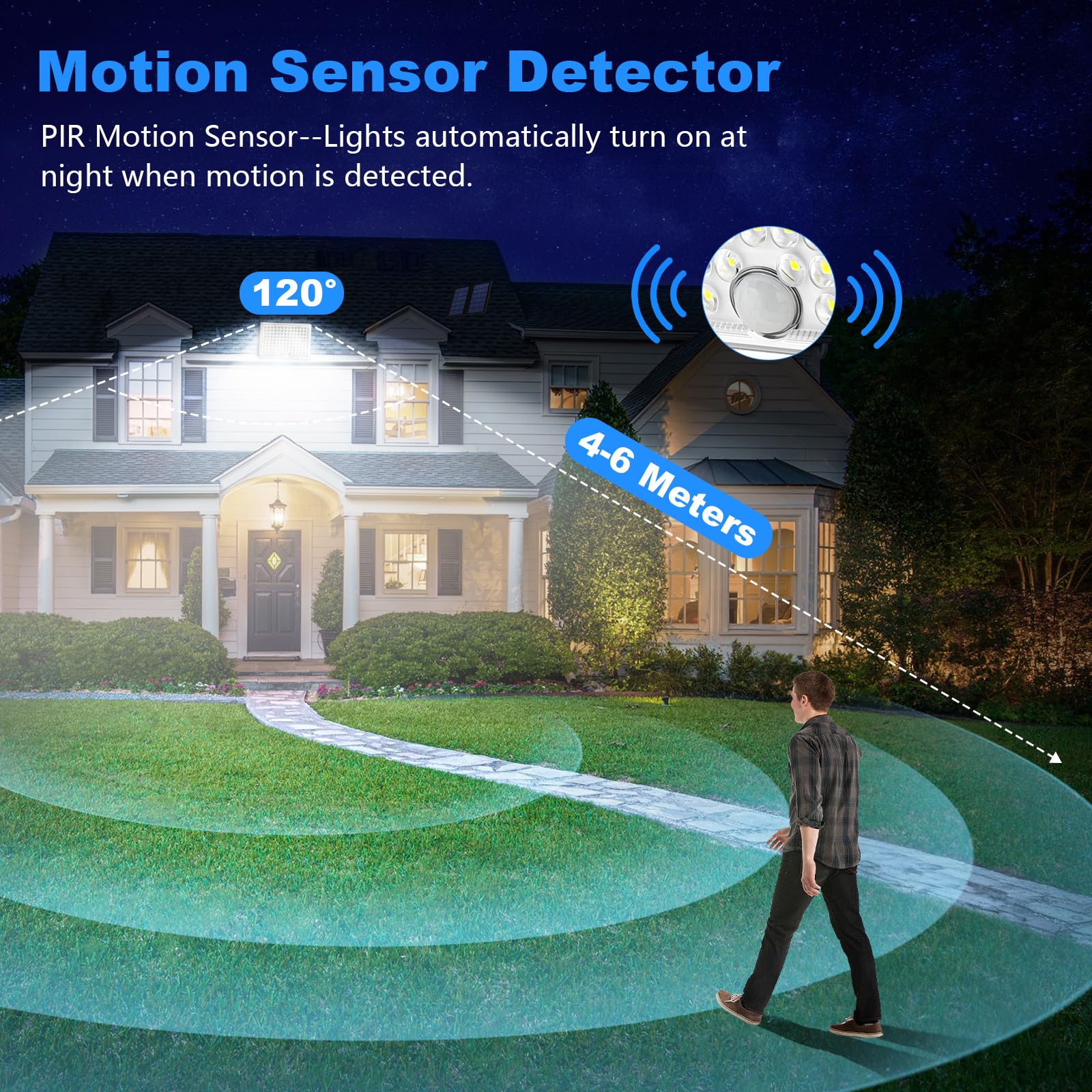 3 Erfassungsmodi: Unsere Solar-Wandleuchte für den Aussenbereich verfügt über 3 Erfassungsmodi. Sie können je nach Nutzungsszenario verschiedene Erfassungsmodi auswählen, um alle Ihre Beleuchtungsanforderungen zu erfüllen.