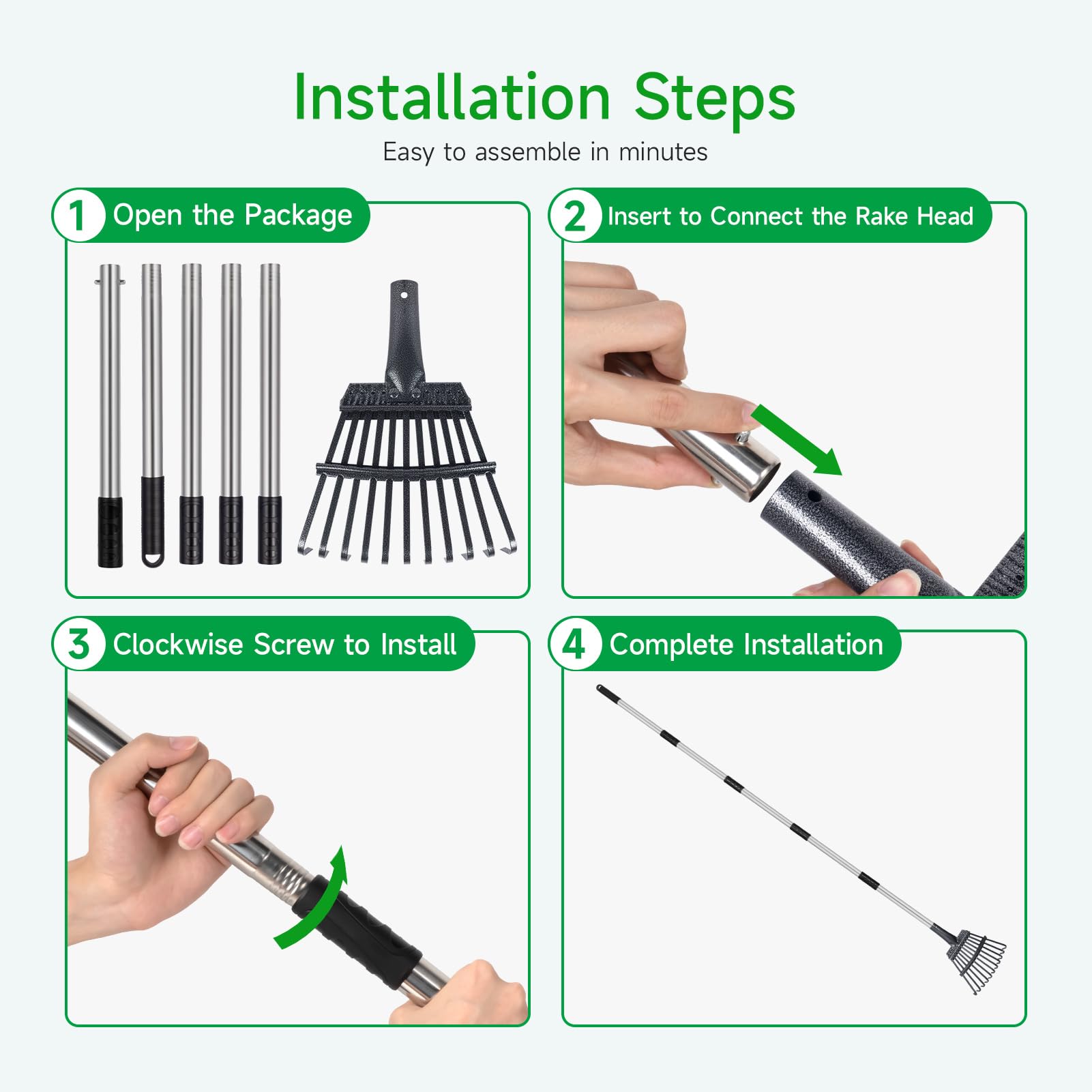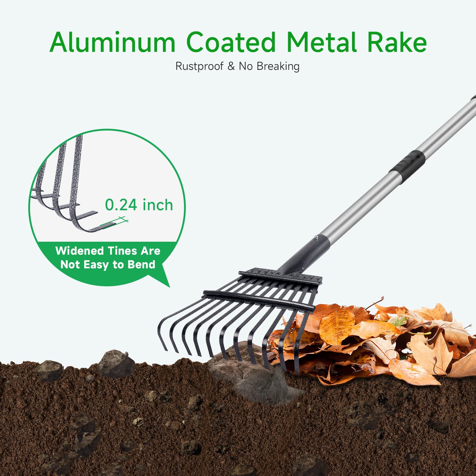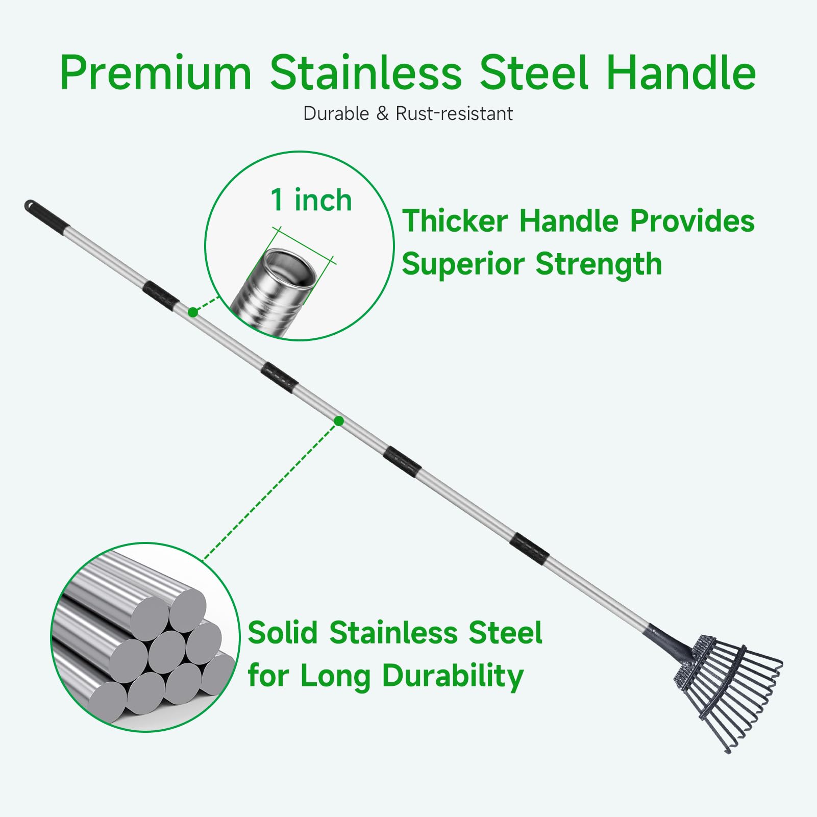 Rechen für Blätter, strapazierfähig, 182 cm lang, erweiterbar, 45,7 cm breit, Gartenrechen mit 25 verstärkten Zinken und Edelstahlgriff für Rasen, Hof, Laubreinigung