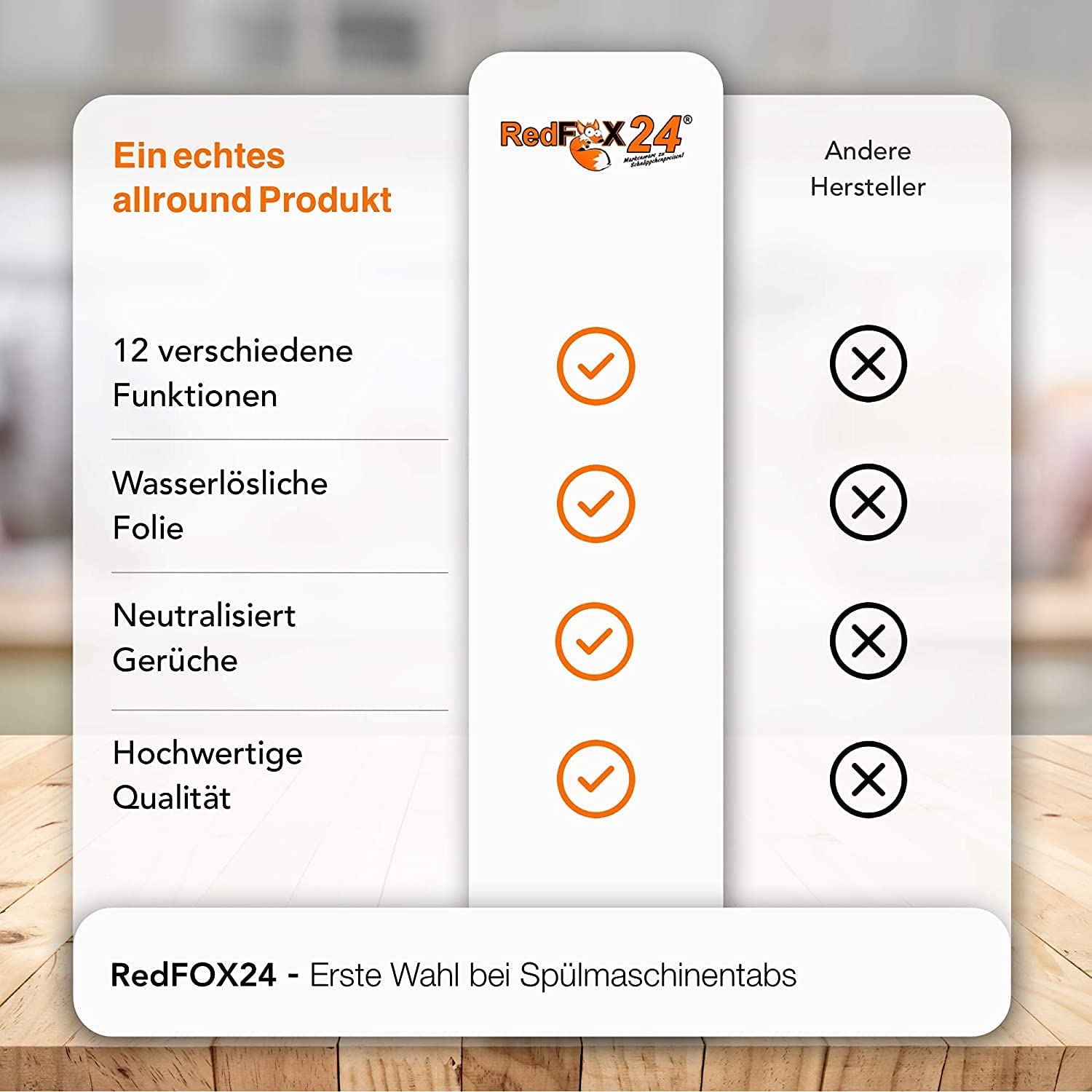 RedFOX24 Premium Spülmaschinen Tabs - mit wasserlöslicher Folie - Geschirrspültabs - 12 verschiedene Funktionen - in einem 4 KG Karton erhältlich