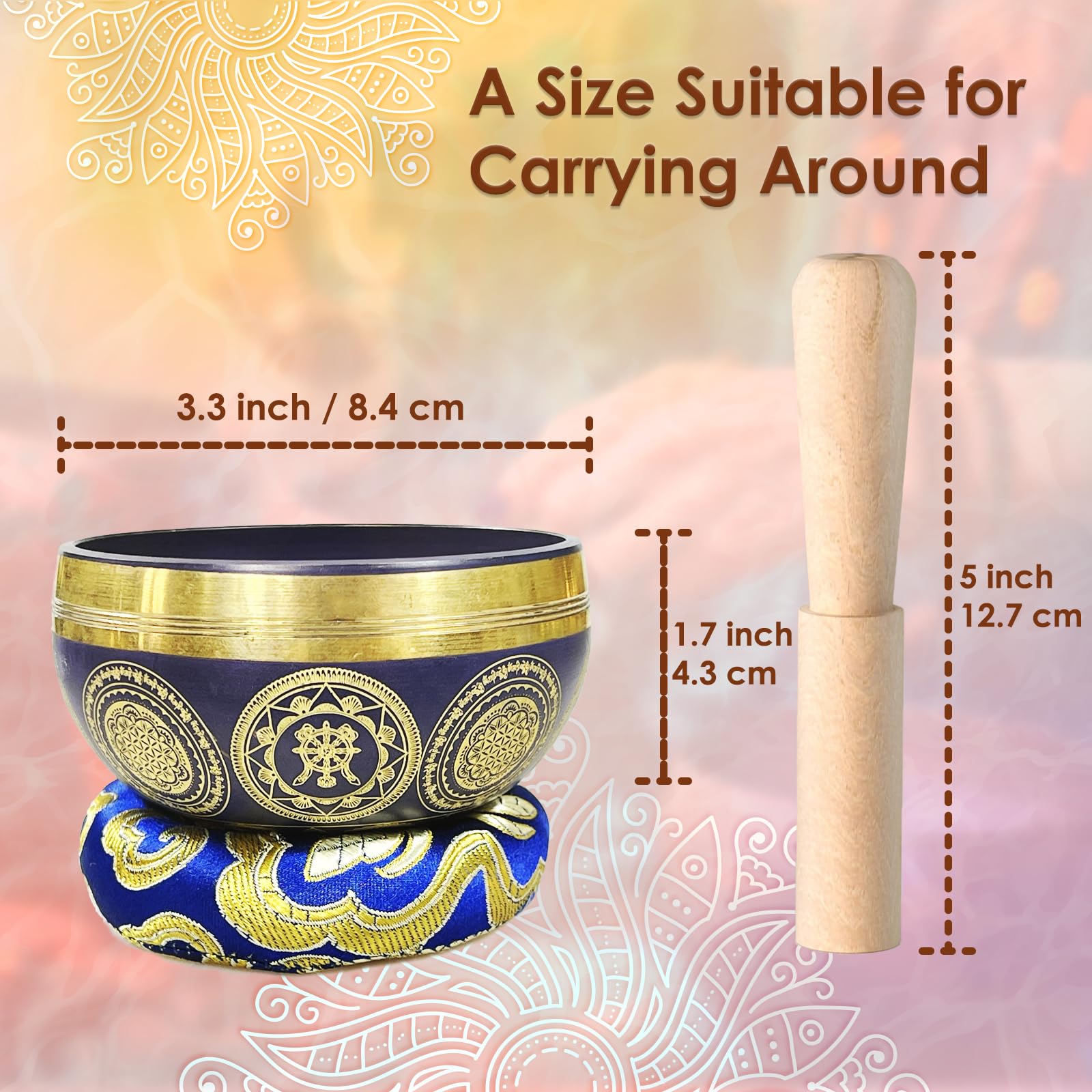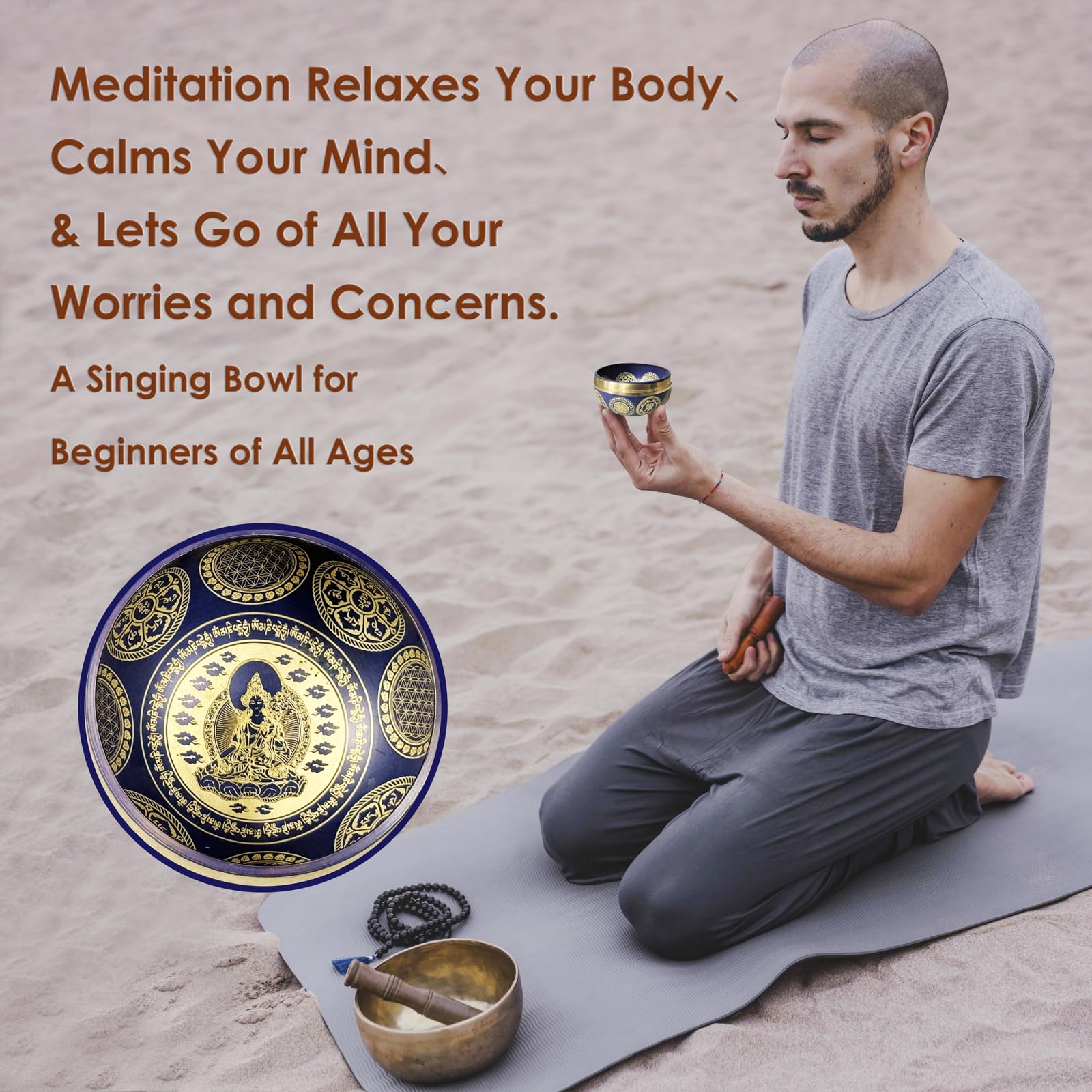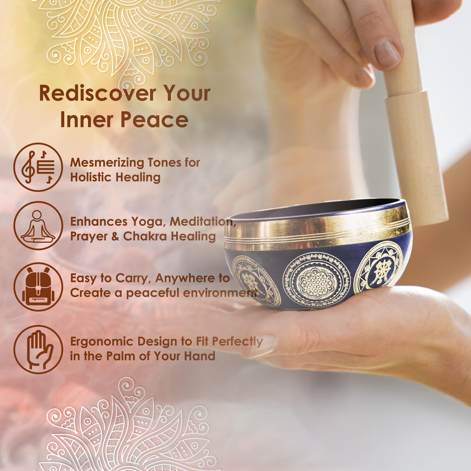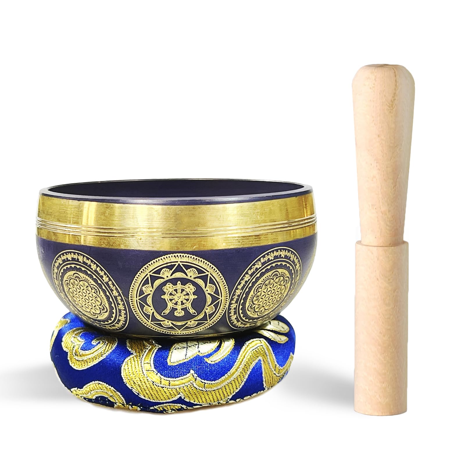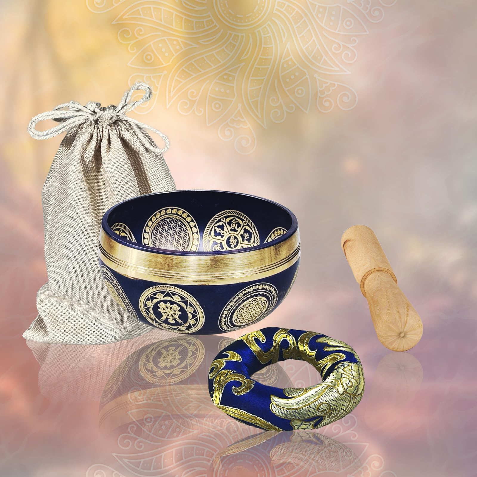REGIS Tibetische Klangschalen-Set, Achtsamkeit und Stressabbau, Zen-Dekor, Schale handgefertigt in Nepal für Heilung und Achtsamkeit (Dunkelblau, 3IN)