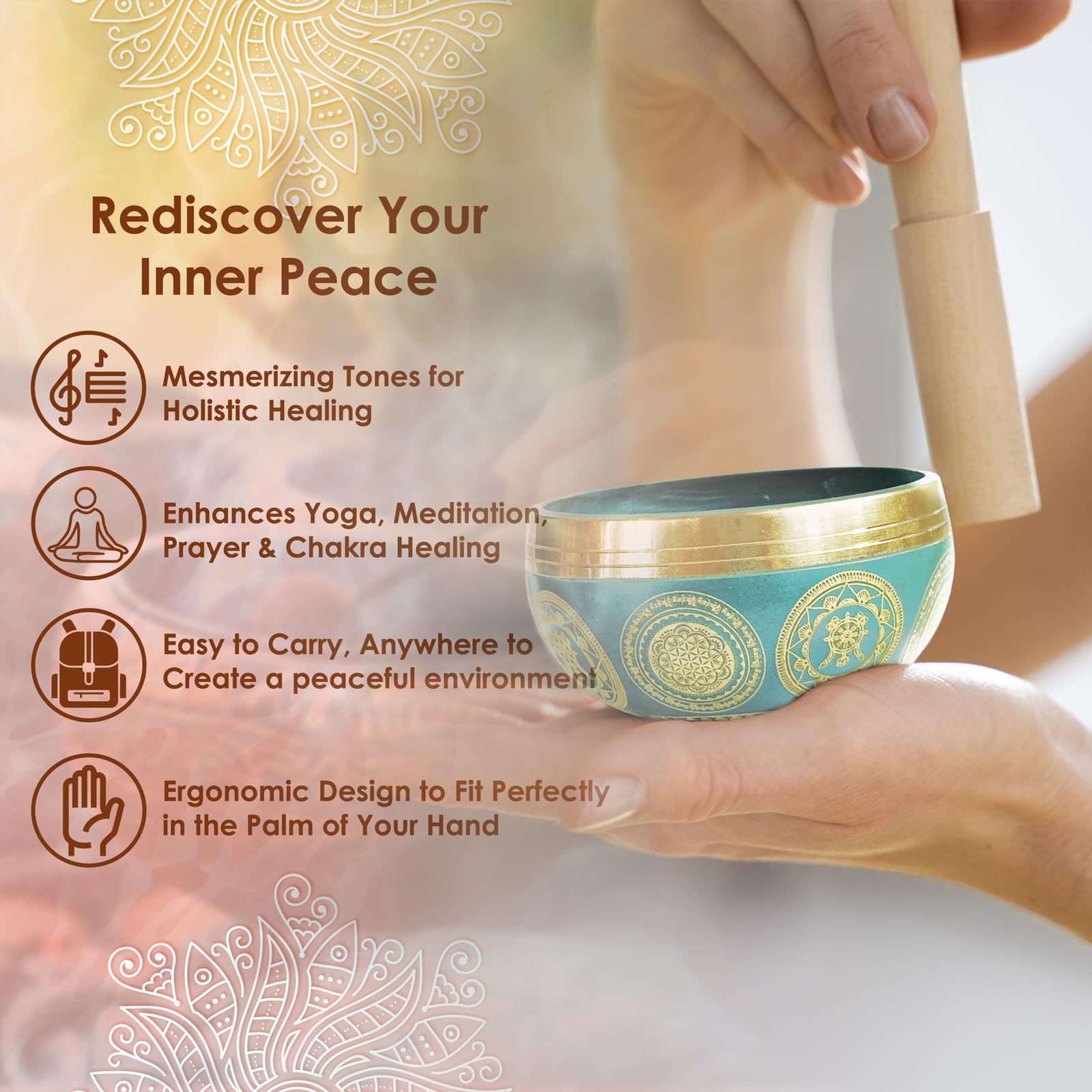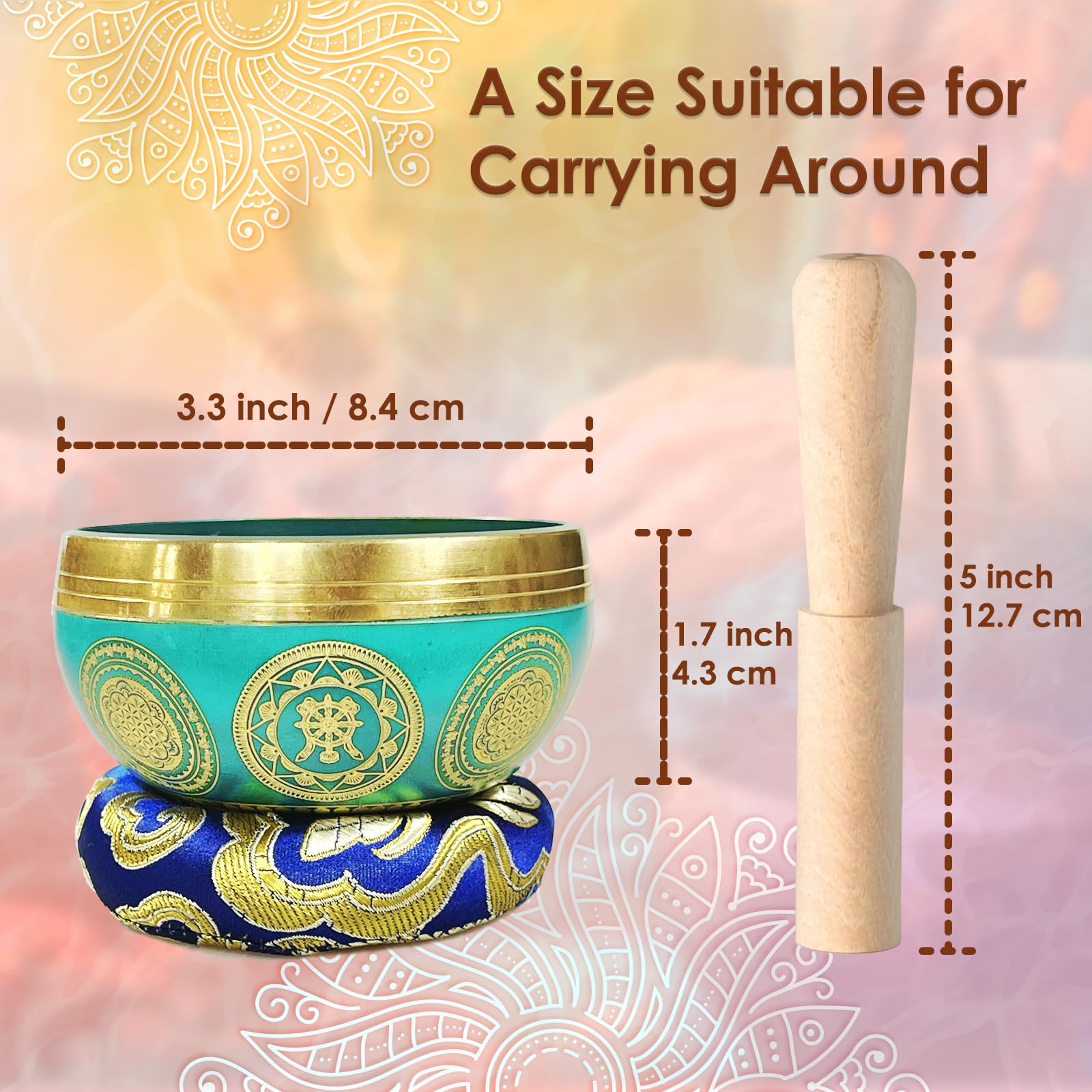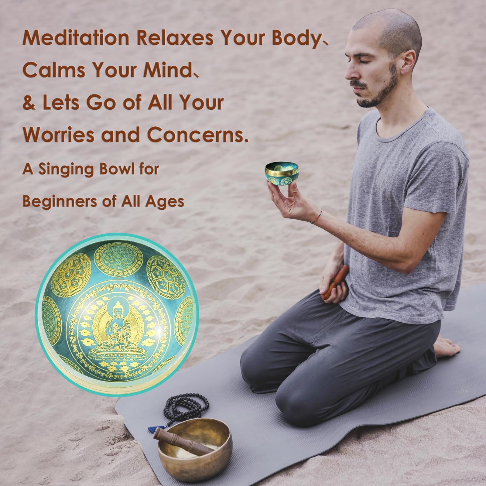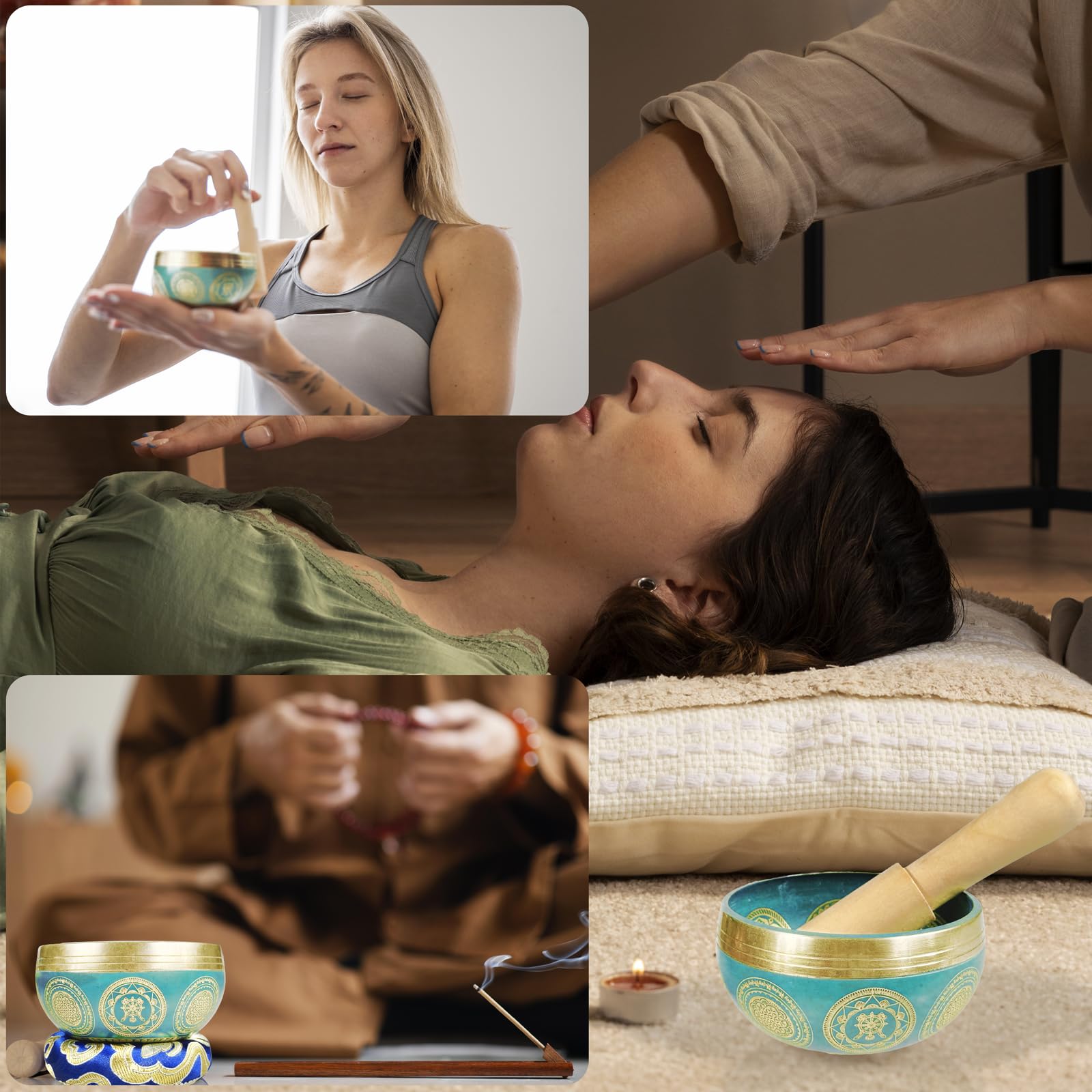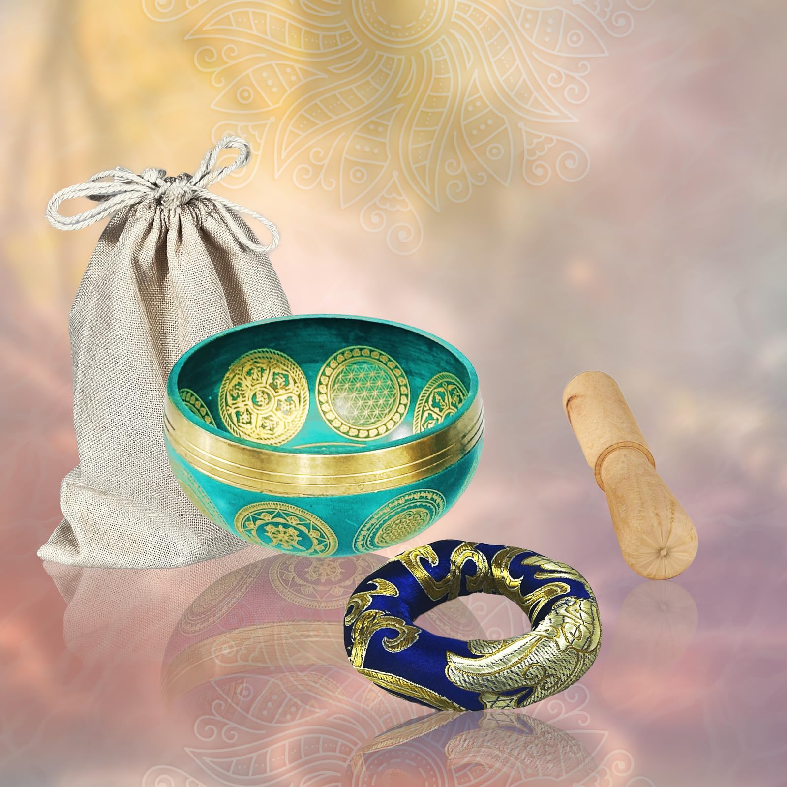 Tibetisches Klangschalen-Set, Achtsamkeits- und Stressabbau-Zen-Dekor, Schale handgefertigt in Nepal für Heilung und Achtsamkeit