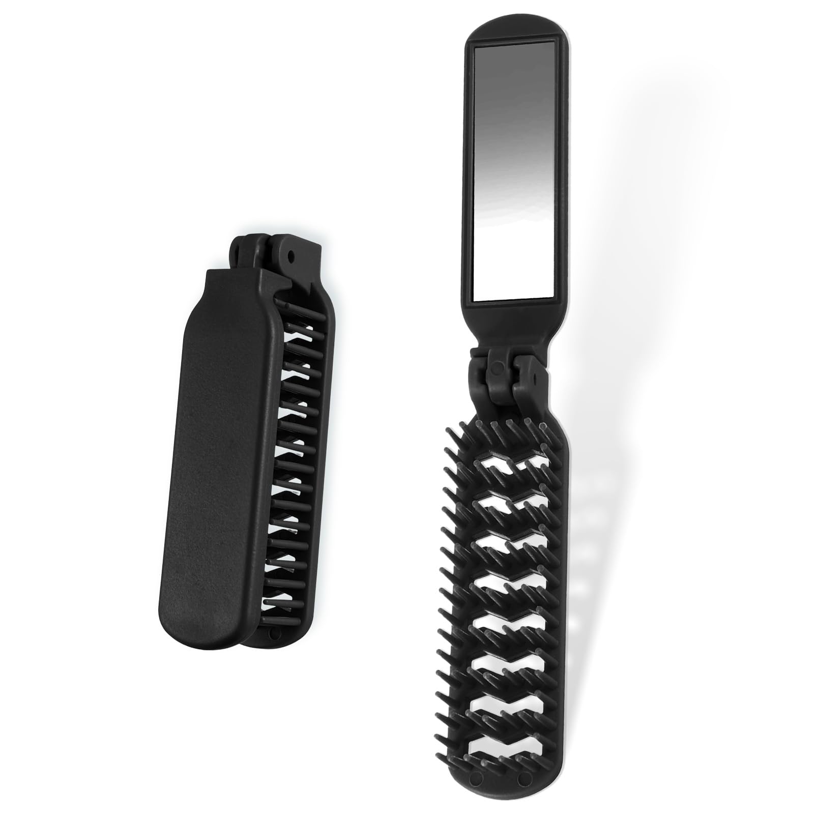 Reise-Haarbürste mit Spiegel – Faltbar, Kompakt, Schwarz