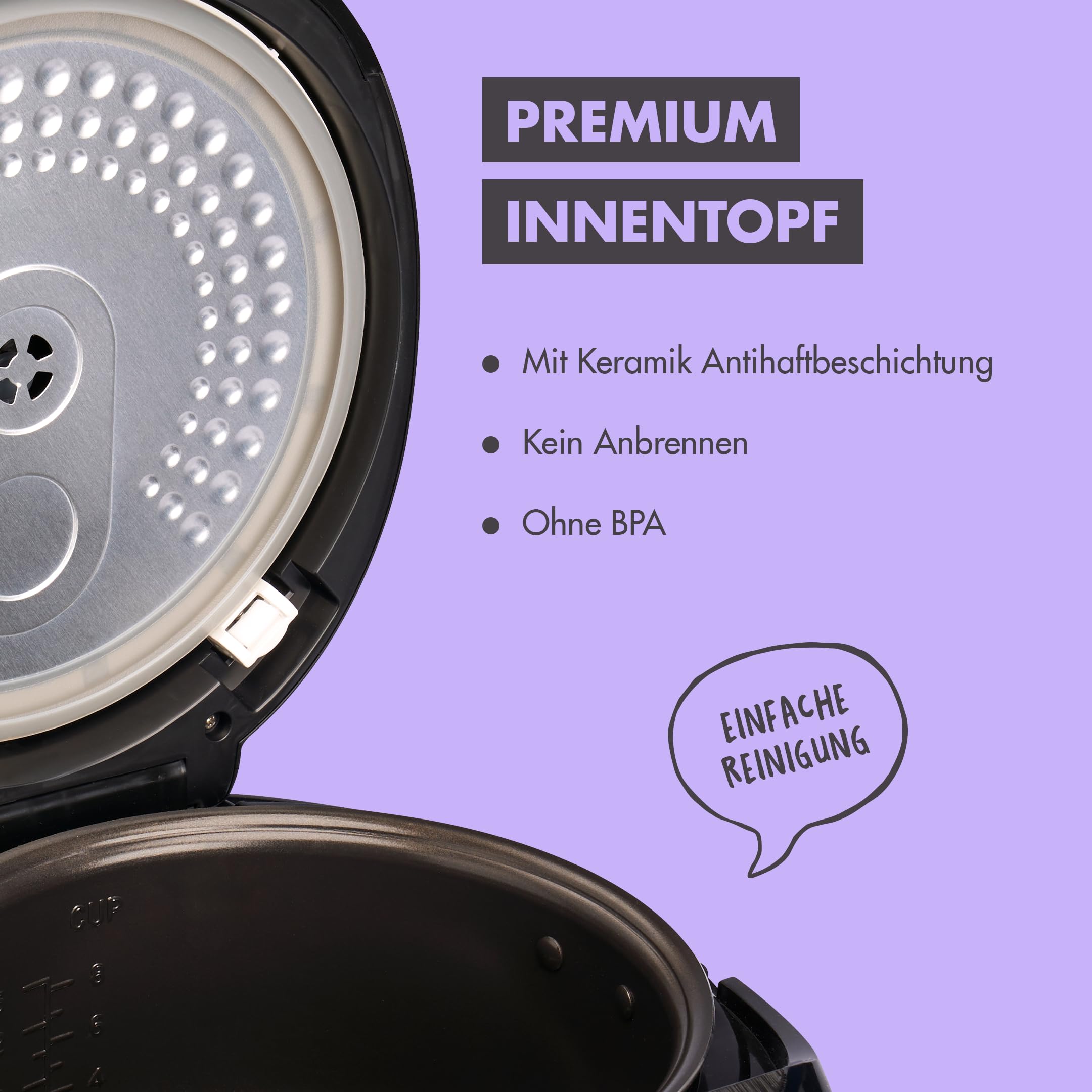 REISHUNGER Digitaler Reiskocher & Dampfgarer Schwarz | 1,5 L bis 8 Personen | Warmhaltefunktion, Timer & Premium Innentopf | Multikocher, 12 Programme, 7-Phasen-Technologie