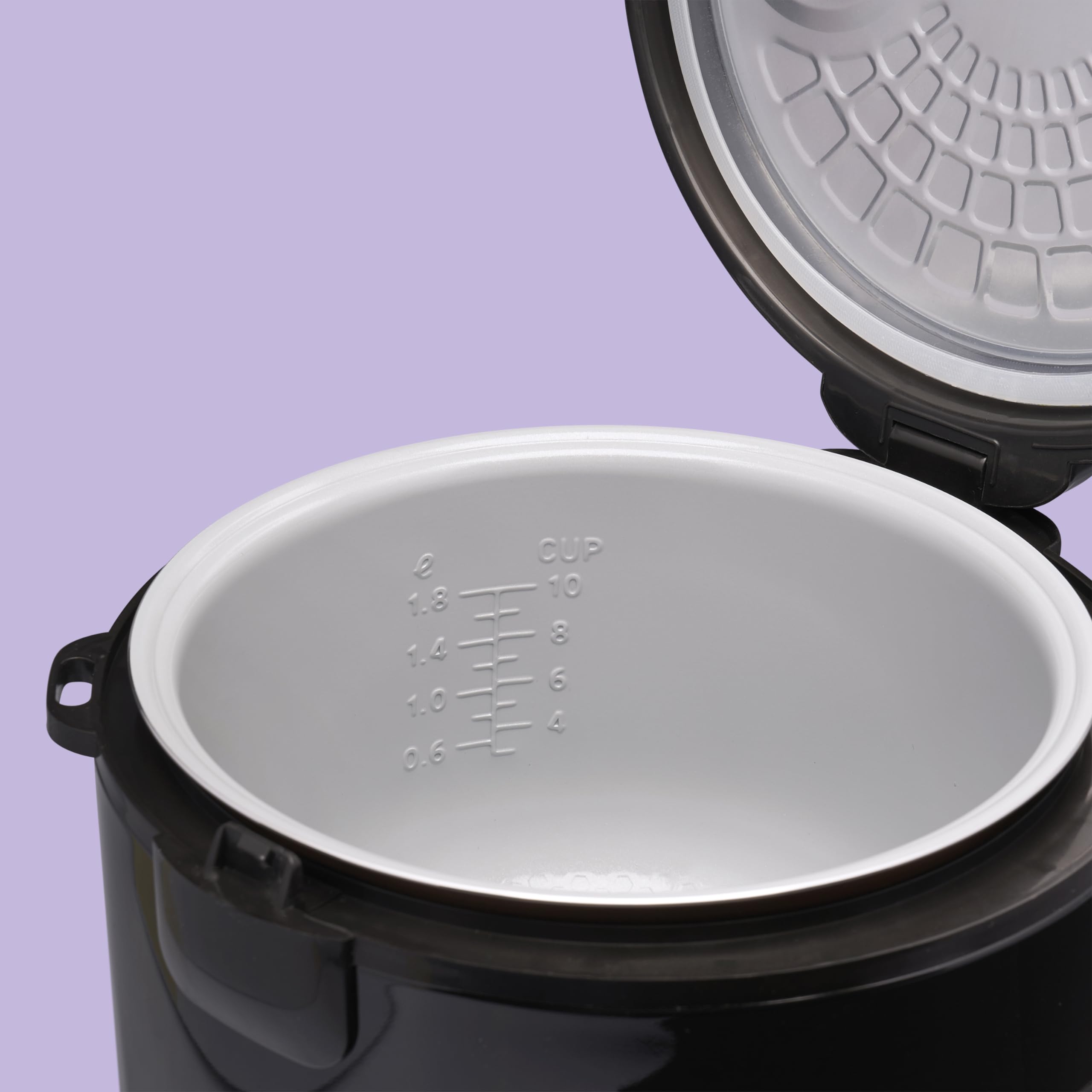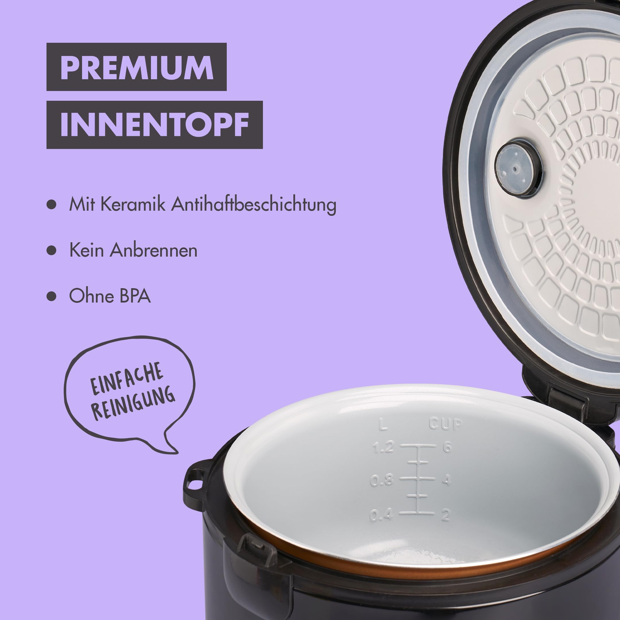 REISHUNGER Reiskocher & Dampfgarer mit Keramikbeschichtung - 1,2 L, Schwarz - Für 1-6 Personen - Schnelle Zubereitung ohne Anbrennen - Mit Warmhaltefunktion inkl. Dämpfeinsatz, Löffel & Messbecher