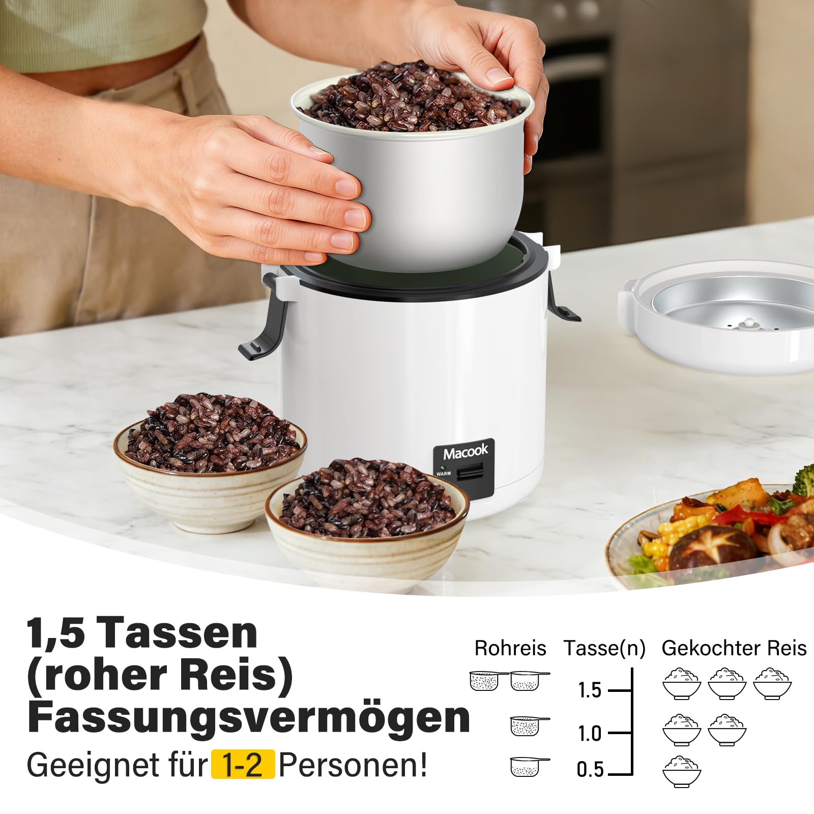 • ✅Kompakter Reiskocher für unterwegs: Perfekt für Singles! 0,3-Liter-Fassungsvermögen für bis zu 1,5 Tassen Reis. Extrem leichtes Design, ideal für Reisen, Camping und kleine Küchen – benötigt minimalen Stauraum.