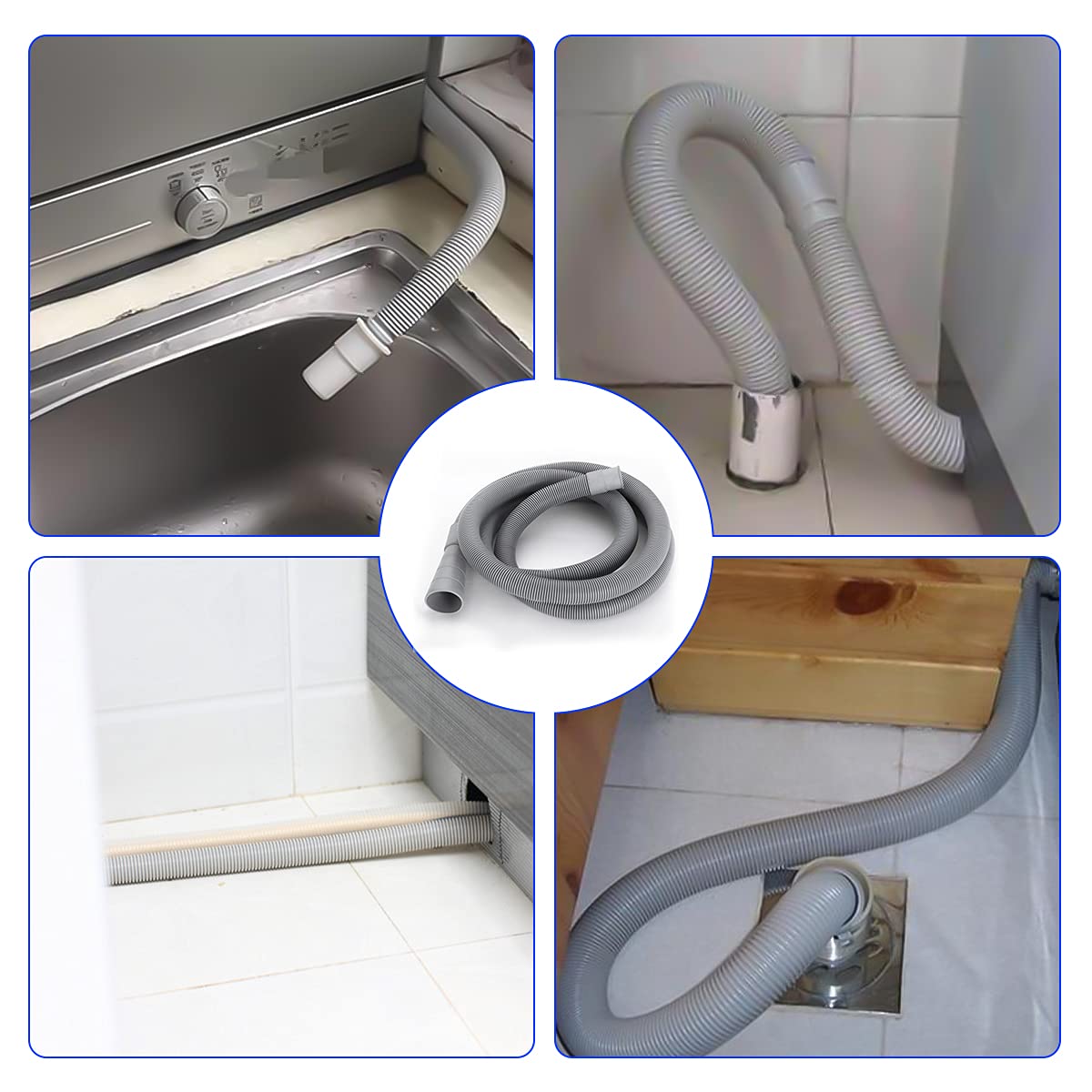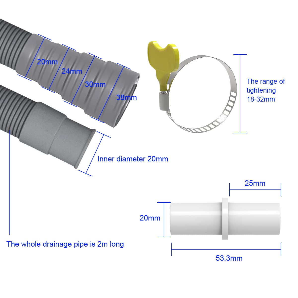 REKALRO Ablaufschlauch Verlängerung, Waschmaschinenschlauch 2m mit Bügel, Abwasserschlauch mit Verbinderl und 2 Schlauchschellen, Ø 20mm Ablaufschlauchverlängerung für Waschmaschine Spülmaschine