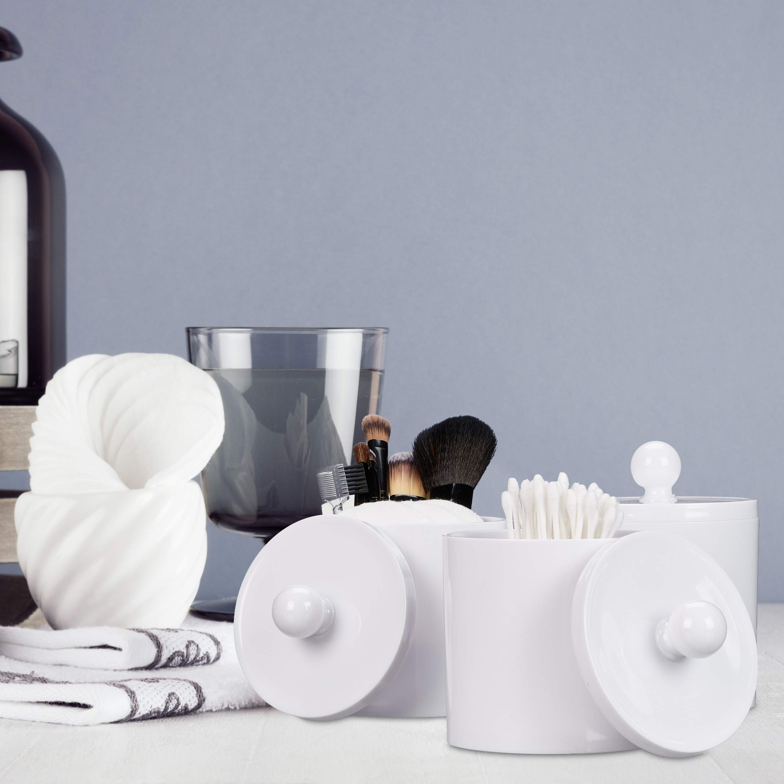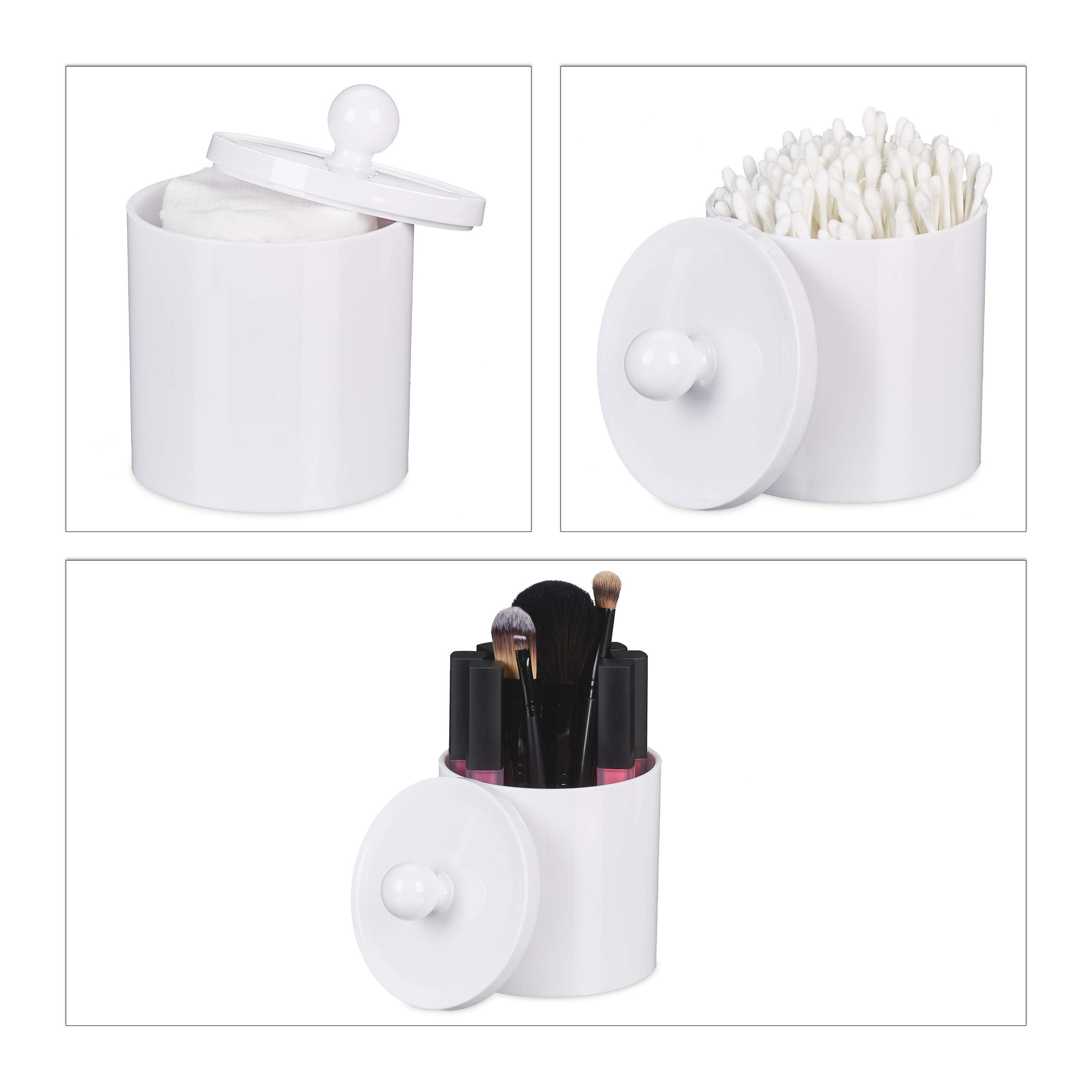 Relaxdays Wattestäbchen Aufbewahrung im 3er Set, Wattepadhalter, mit Deckel, pflegeleicht, Acryl Organizer, weiss 10026558_49