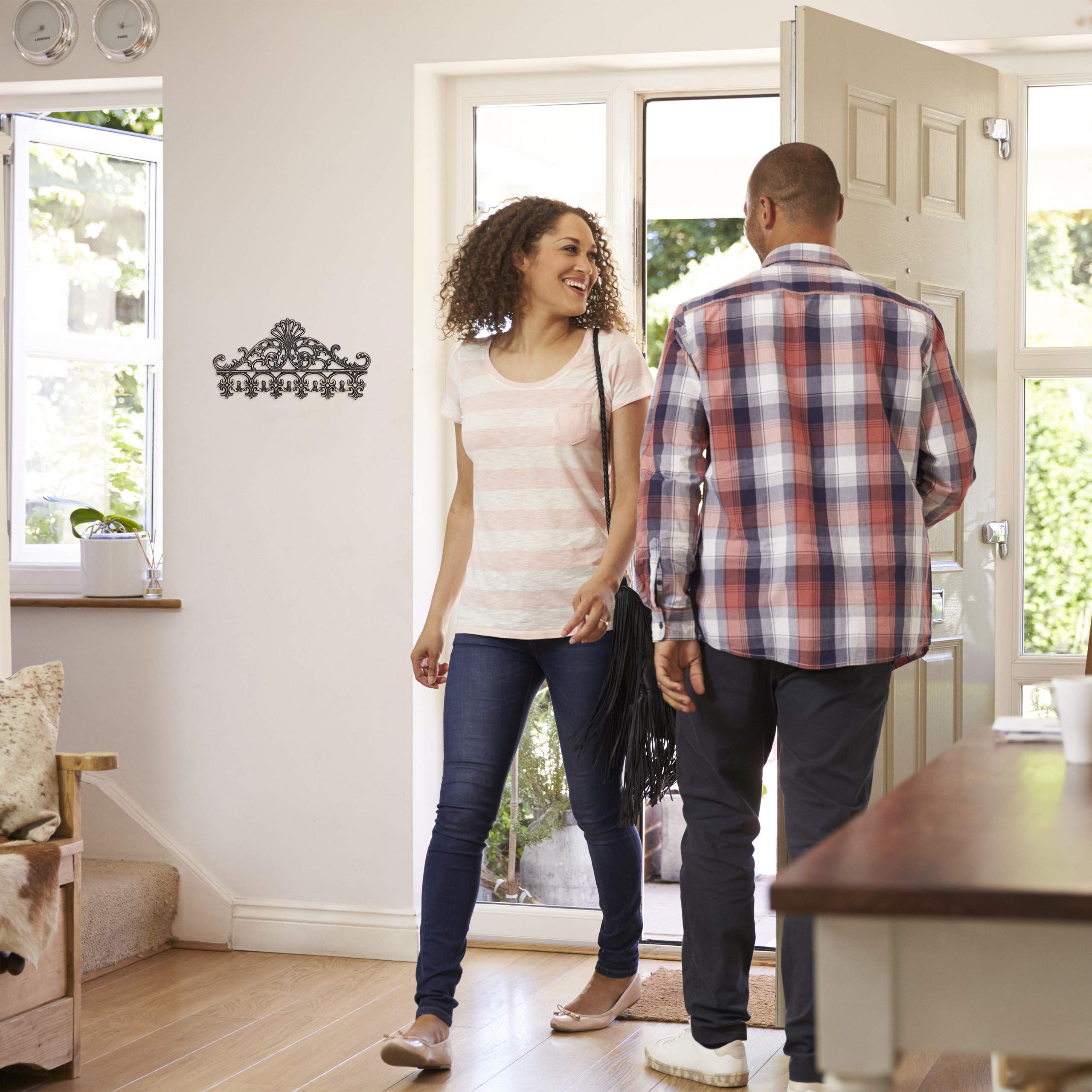 Mit dieser Wandgarderobe verleihen Sie Ihrem Eingangsbereich den Charme einer barocken Eingangshalle. Die liebevolle Gestaltung mit dekorativen Ornamenten lässt sie zum echten Hingucker werden. An den stabilen Haken aus Gusseisen findet Ihre Garderobe ausreichend Platz. Auch als Schlüsselbrett im Flur oder als Handtuchhalter für Geschirrtücher eignet sich die Hakenleiste.