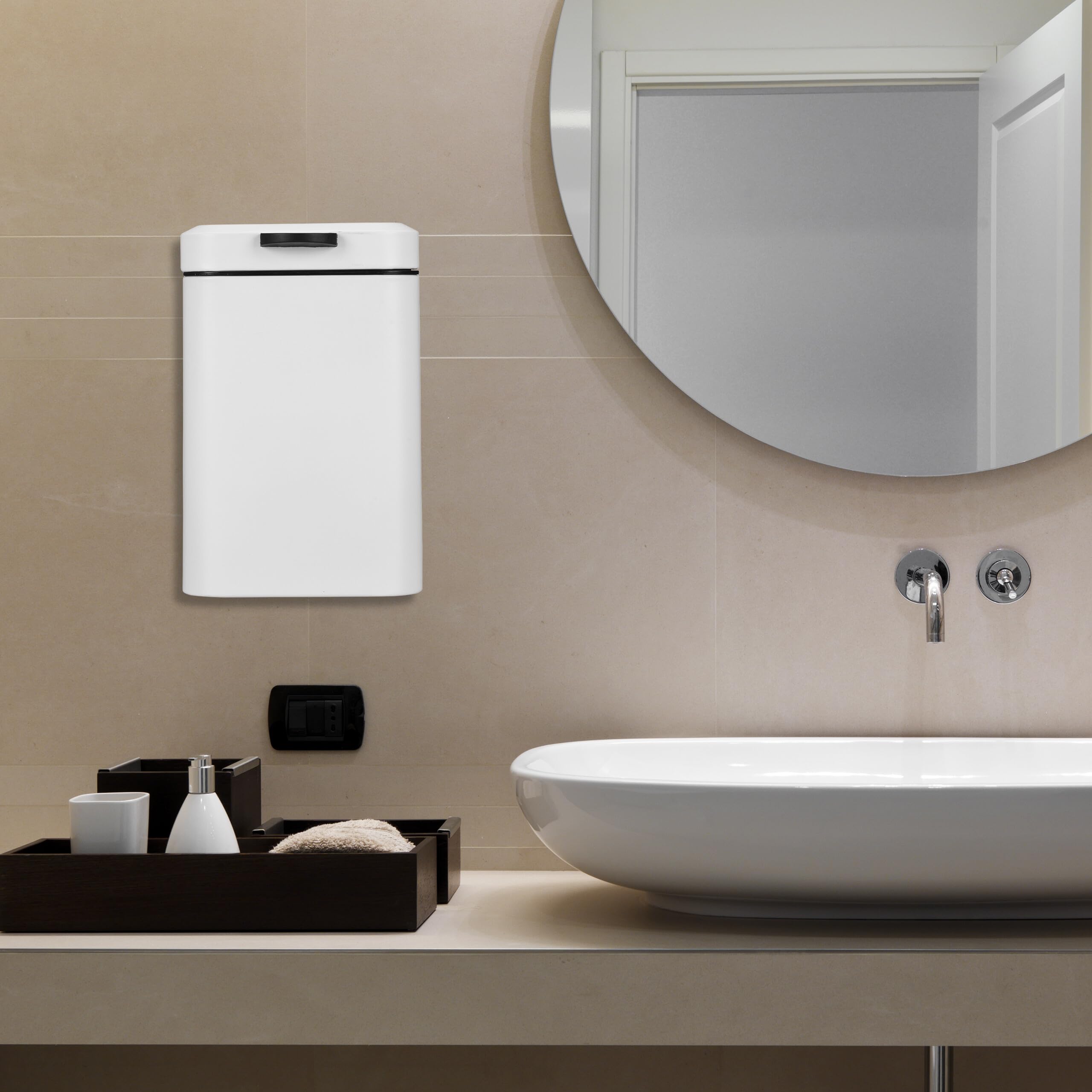 Relaxdays Kosmetikeimer Wandmontage, 3 l, Absenkautomatik, entnehmbarer Inneneimer, Bad Mülleimer, Edelstahl, weiss