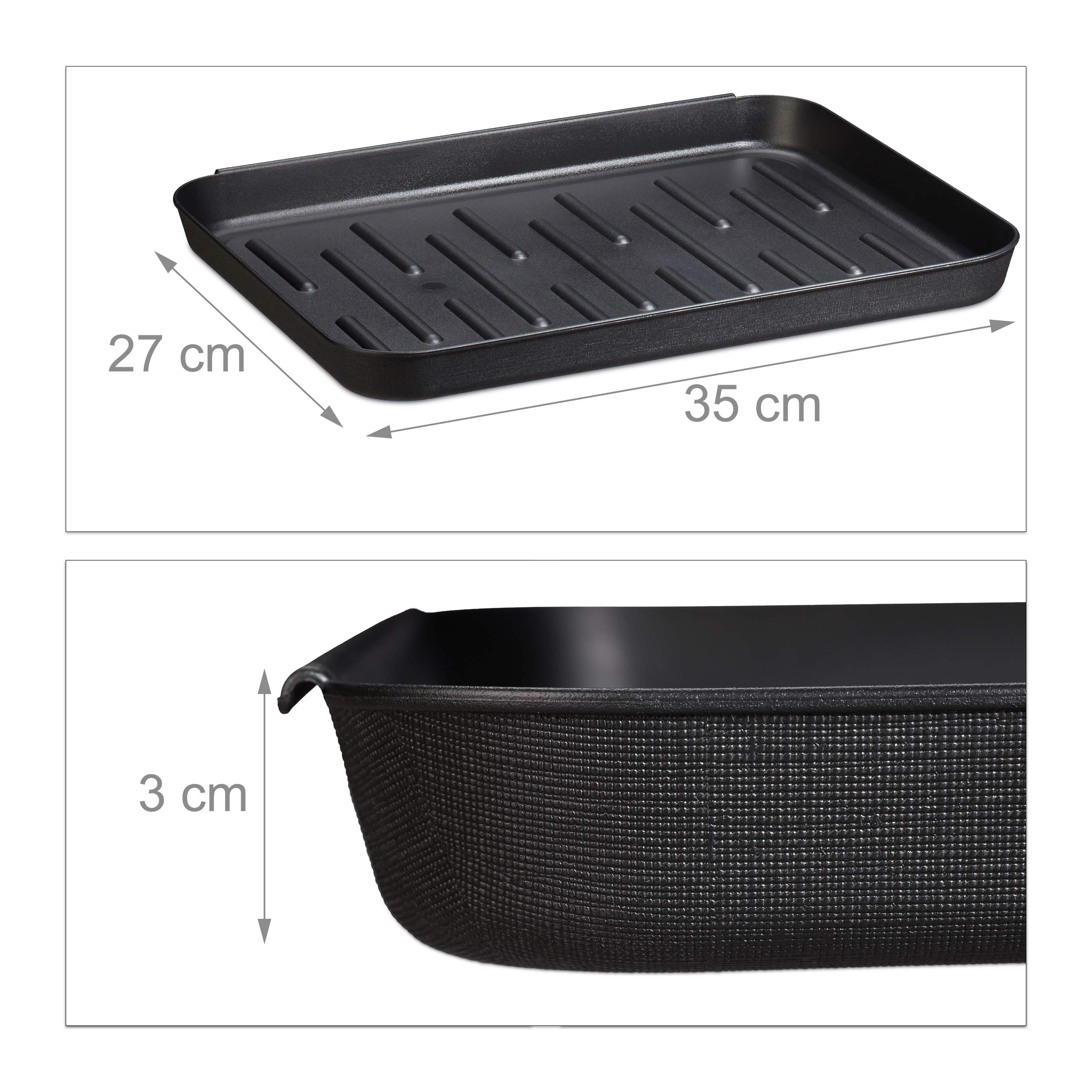 Relaxdays Schuhabtropfschale 3er Set, Schuhwanne aus Kunststoff, für 3 Paar Schuhe, Ablage HxBxT 3 x 35 x 27 cm, schwarz