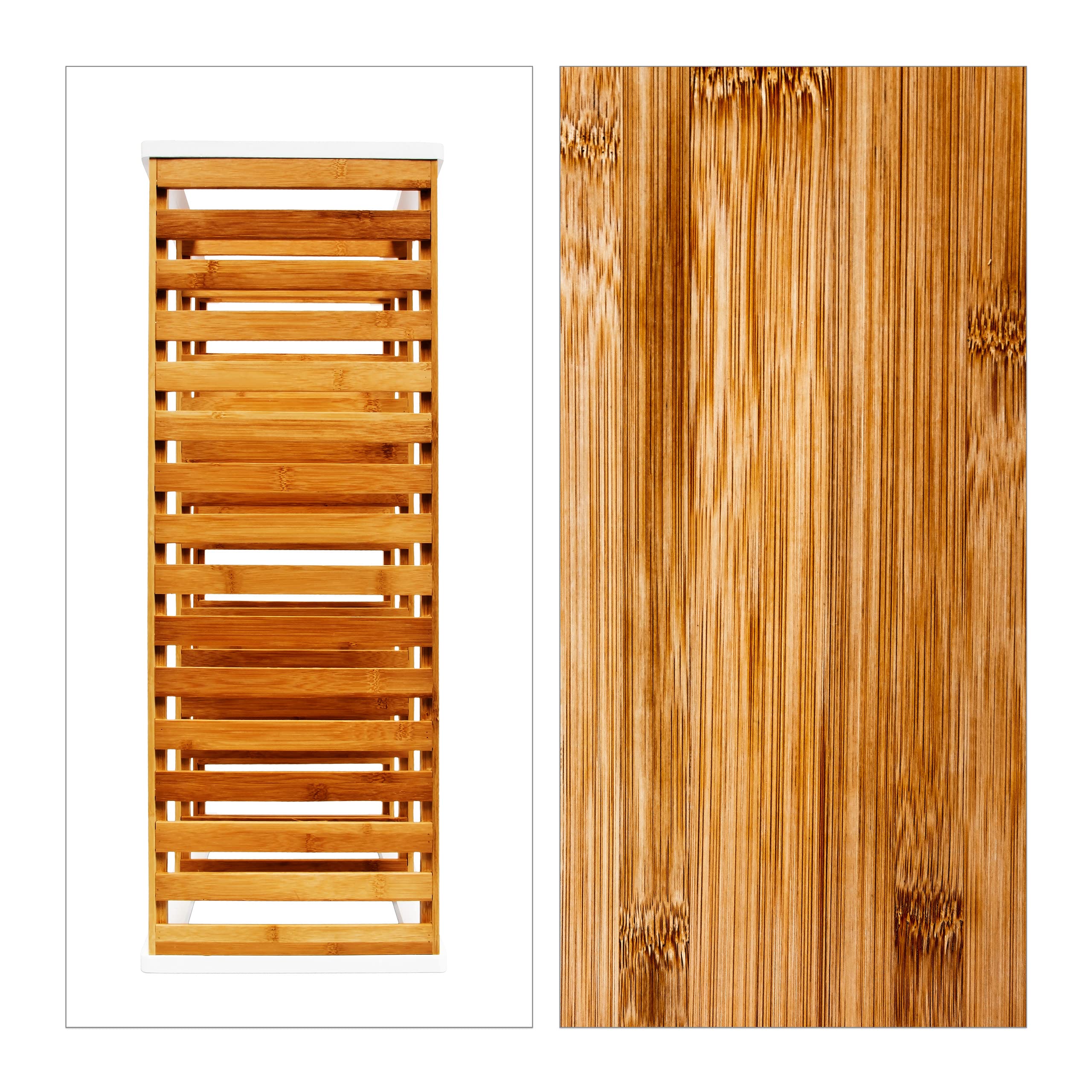 Relaxdays Schuhregal aus Bambus HxBxT: ca. 54,5 x 70 x 24,5 cm Schuhschrank mit 3 Ablagen Schuhablage für 9 Paar Schuhe als Schuhständer und Schuhaufbewahrung aus Holz stabiles Regal, natur und weiss