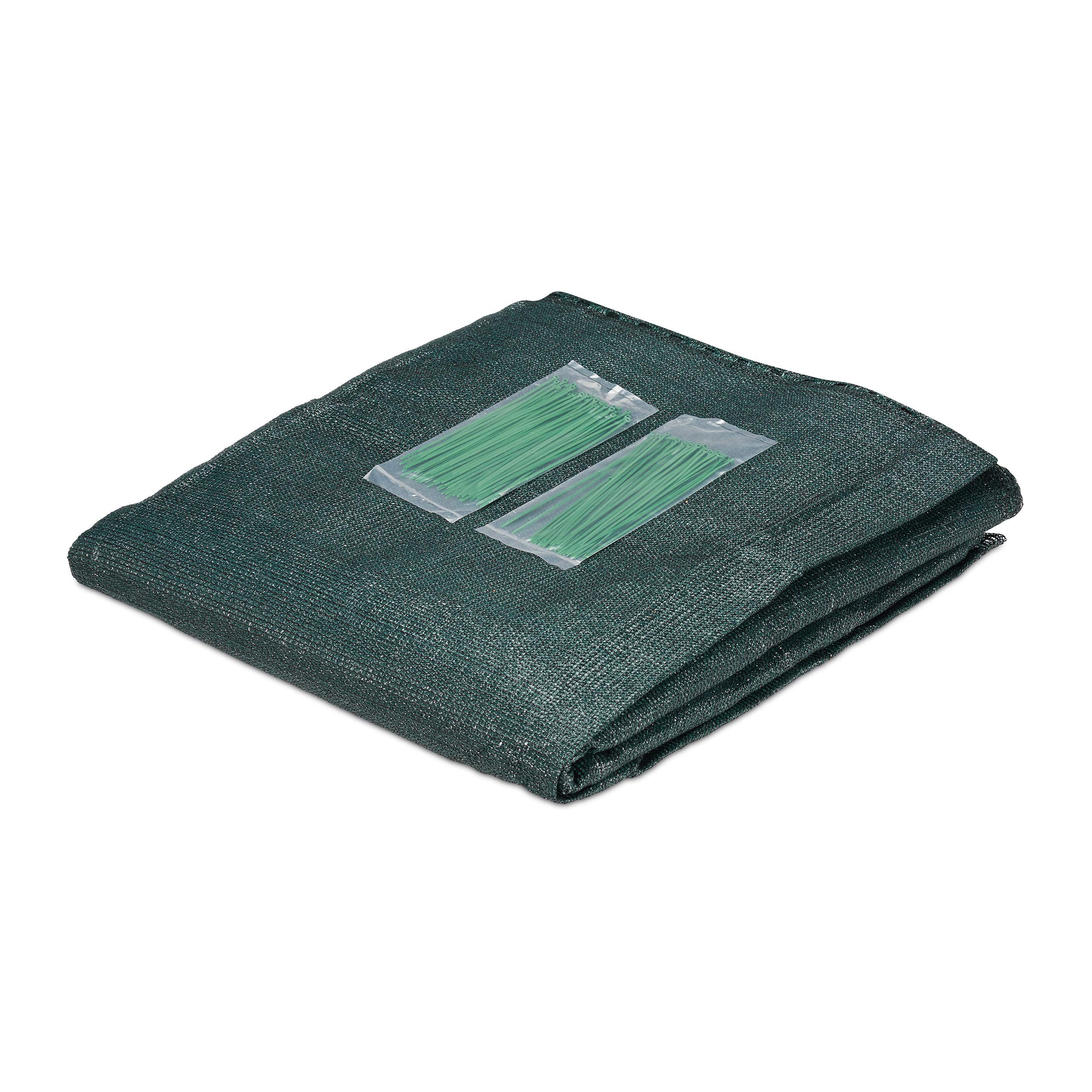 Die Zaunblende aus hochwertigem und robustem HDPE-Gewebe bietet idealen Schutz vor neugierigen Blicken der Nachbarn, sowie vor Wind und Staub. Mit den beiliegenden Kabelbindern ist sie schnell und einfach am Gartenzaun oder Balkongeländer befestigt. Dank einem Schattierungswert von 85% kann das Gewebe auch zur Beschattung von Pergolen oder Gewächshäusern genutzt werden. Der wetterfeste, temperaturbeständige und UV-stabilisierte Stoff ist perfekt für den ganzjährigen Einsatz im Freien geeignet.Zaunblende im Detail- Höhe: ca. 1,5 m- Breite: ca. 6m / 10m / 15m / 20m / 25m / 30m / 50m- Massetoleranz: +/- 2%- Breite je Befestigungsloch: ca. 1,5 cm- Abstand der Befestigungslöcher: ca. 2 cm- Material: HDPE-Gewebe (150 g/m²)- Farbe: DunkelgrünWeitere Details zur Zaunverkleidung- Schattierungswert: ca. 85%- Winddurchlässigkeit: ca. 10%- Reissfestigkeit: ca. 450-500 N/5cm- Weiterreissfestigkeit: ca. 150 N- UV-Stabilität: ca. 300 KLY- Temperaturbeständigkeit: ca. -40 bis +80 °CSichtschutz für Garten und Balkon- Schutz vor neugierigen Blicken, Wind und Staub- Extrem stabil, reissfest und langlebig- Wetterfest, temperaturbeständig und UV-stabilisiert- Auch zur Beschattung von Gewächshäusern, Pergolen uvm.- Perfekt als Sichtschutz am Tennisplatz- Inklusive Kabelbinder zur einfachen und schnellen BefestigungLieferumfang- 1x Zaungewebe in Grösse nach Wahl- 50x bzw. 100x Kabelbinder- Anleitung- Dekorationsartikel sind nicht im Lieferumfang enthalten