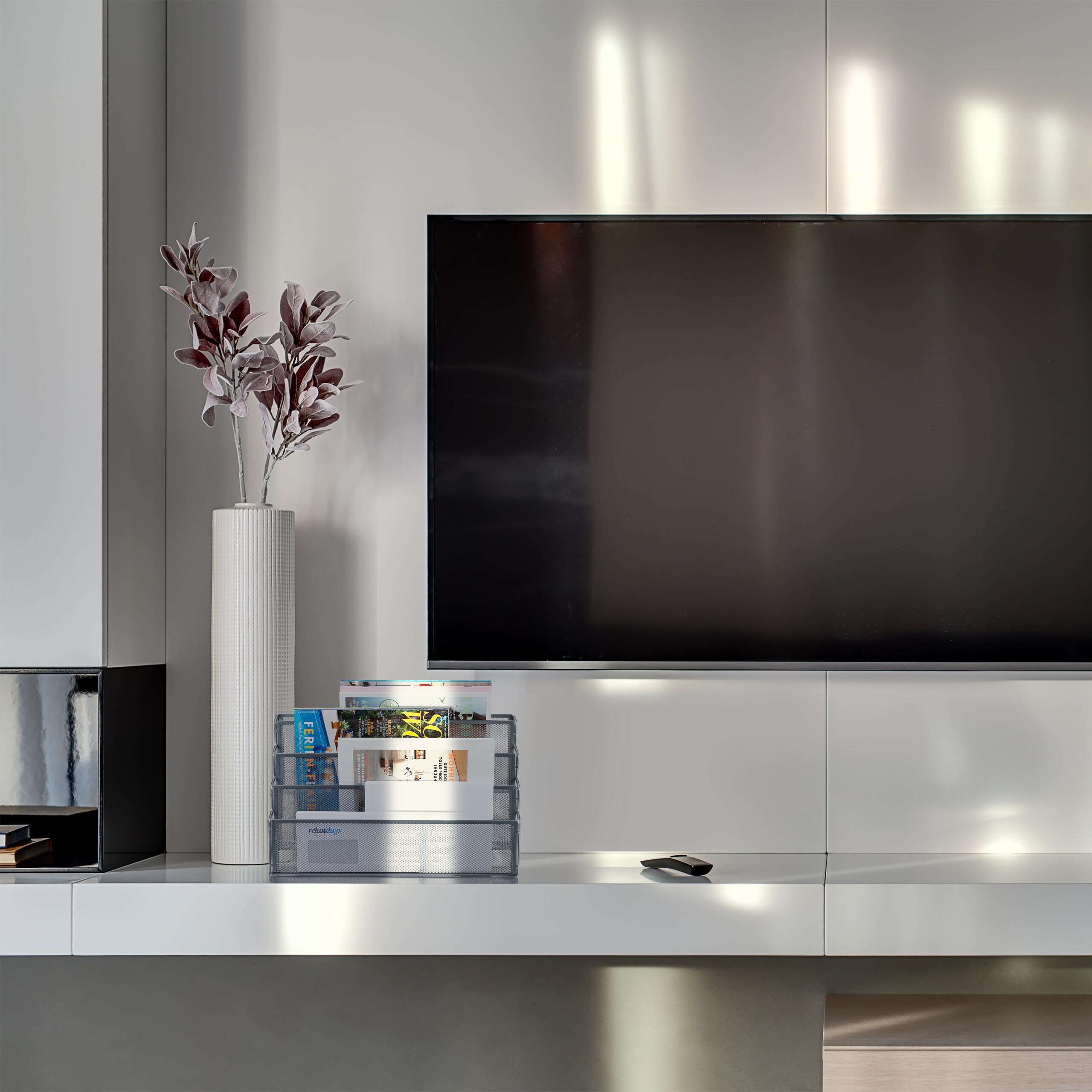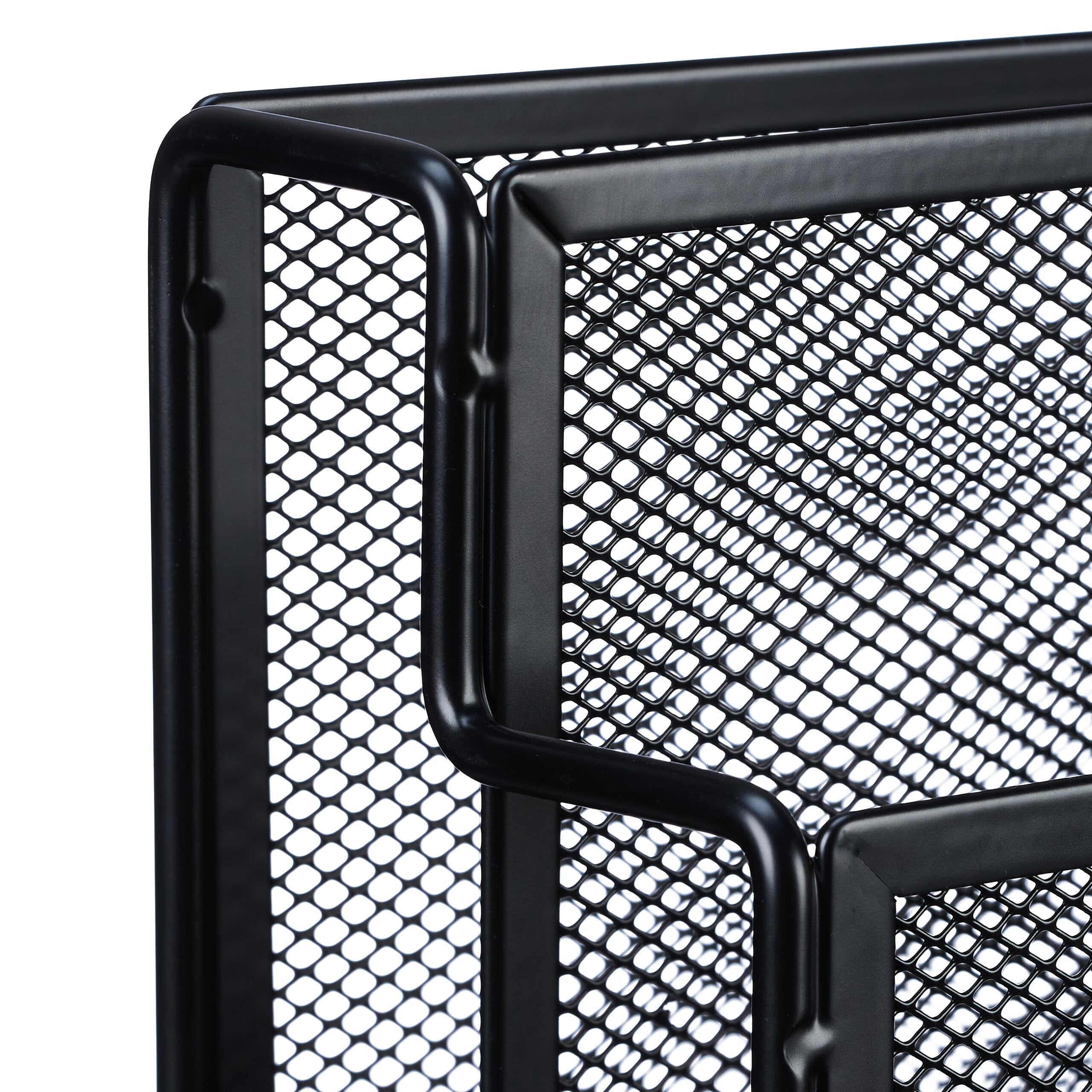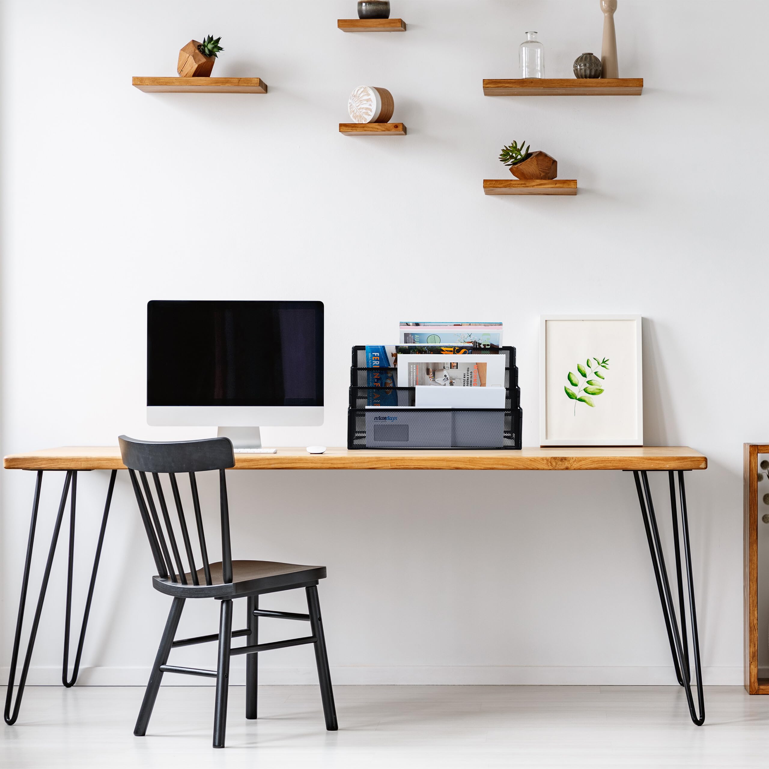 Dieses Zeitungsregal mit 4 Fächern ist ideal, um Zeitschriften, Magazine, Broschüren und Prospekte übersichtlich und platzsparend zu verstauen. Der Zeitschriftensammler macht nicht nur im Wohnzimmer eine gute Figur, sondern auch als Ablagefach für Dokumente, Briefe und Akten im Büro. Das offene Mesh-Design aus Metall verleiht dem Prospekthalter dabei einen modernen Look. Filzgleiter am Boden des freistehenden Magazinhalters sorgen dafür, dass die Abstellfläche von Kratzern verschont bleibt.Zeitschriftenhalter Metall im Detail- Gesamtmasse H x B x T: ca. 26 x 45 x 18 cm - Traglast: ca. 2,5 kg je Ebene- Gewicht: ca. 1,3 kg- Material: Stahl- In verschiedenen FarbenModerne Dokumentenablage- Innenmasse erstes Fach H x B x T: ca. 10 x 44 x 4,5 cm- Innenmasse zweites Fach H x B x T: ca. 12 x 44 x 4,5 cm- Innenmasse drittes Fach H x B x T: ca. 13,5 x 44 x 4,5 cm- Innenmasse viertes Fach H x B x T: ca. 14 x 44 x 4 cmPapierständer für Zeitungen und Magazine- 4 geräumige Fächer auf unterschiedlicher Höhe- Ideal für Zeitschriften, Magazine und Prospekte- Auch für Dokumente und Briefe im Büro geeignet- Modernes Mesh-Design aus robustem Metall- Mit Filzgleitern gegen ein Zerkratzen des UntergrundsLieferumfang- 1x Zeitschriftenständer in gewählter Farbe- Dekoartikel sind nicht im Lieferumfang enthalten