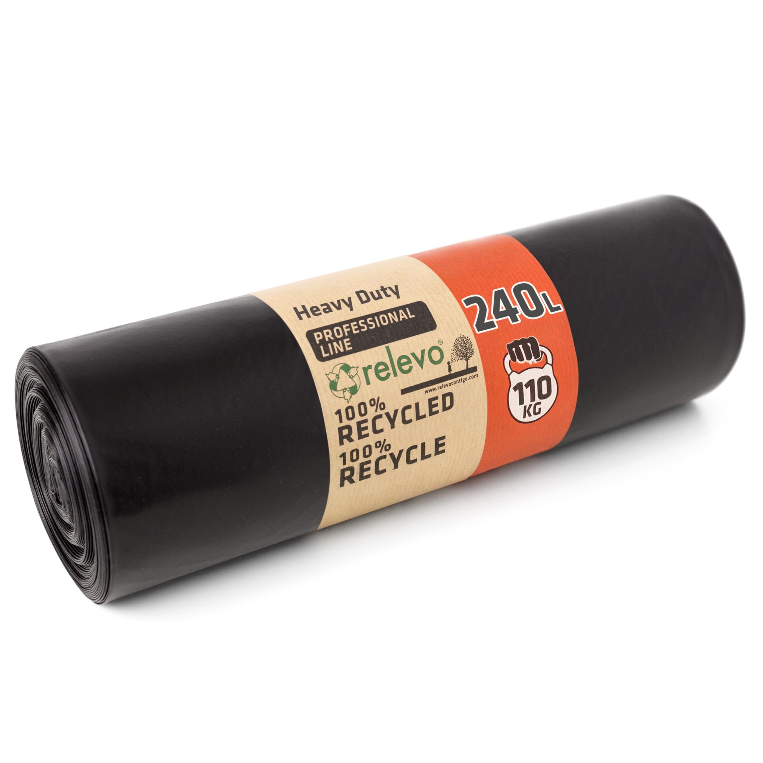 Relevo Professionelle Schwarze Schwerlast-Mülltonnensäcke – 240L (B 120 cm × H 140 cm), 10 Säcke pro Rolle | Extra Stark & Auslaufsicher | 55 µm (Mikrometer) | 100% Recyceltes LDPE