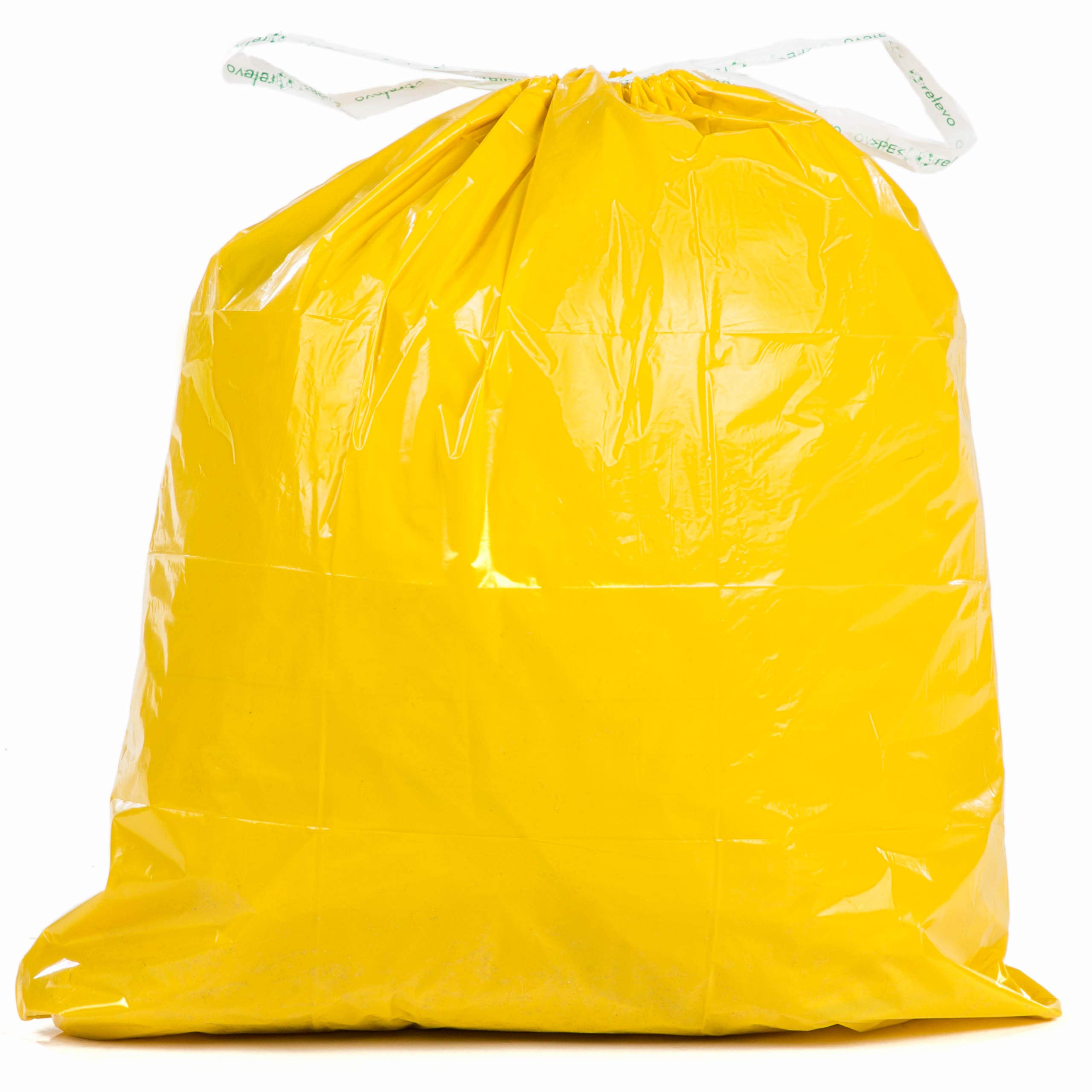 Relevo Gelbe Säcke – 45 Stück Müllbeutel 25L bis 30L mit Zugband, nachhaltig aus recyceltem Kunststoff, Anti-Leak-System, gelbe Mülltüten