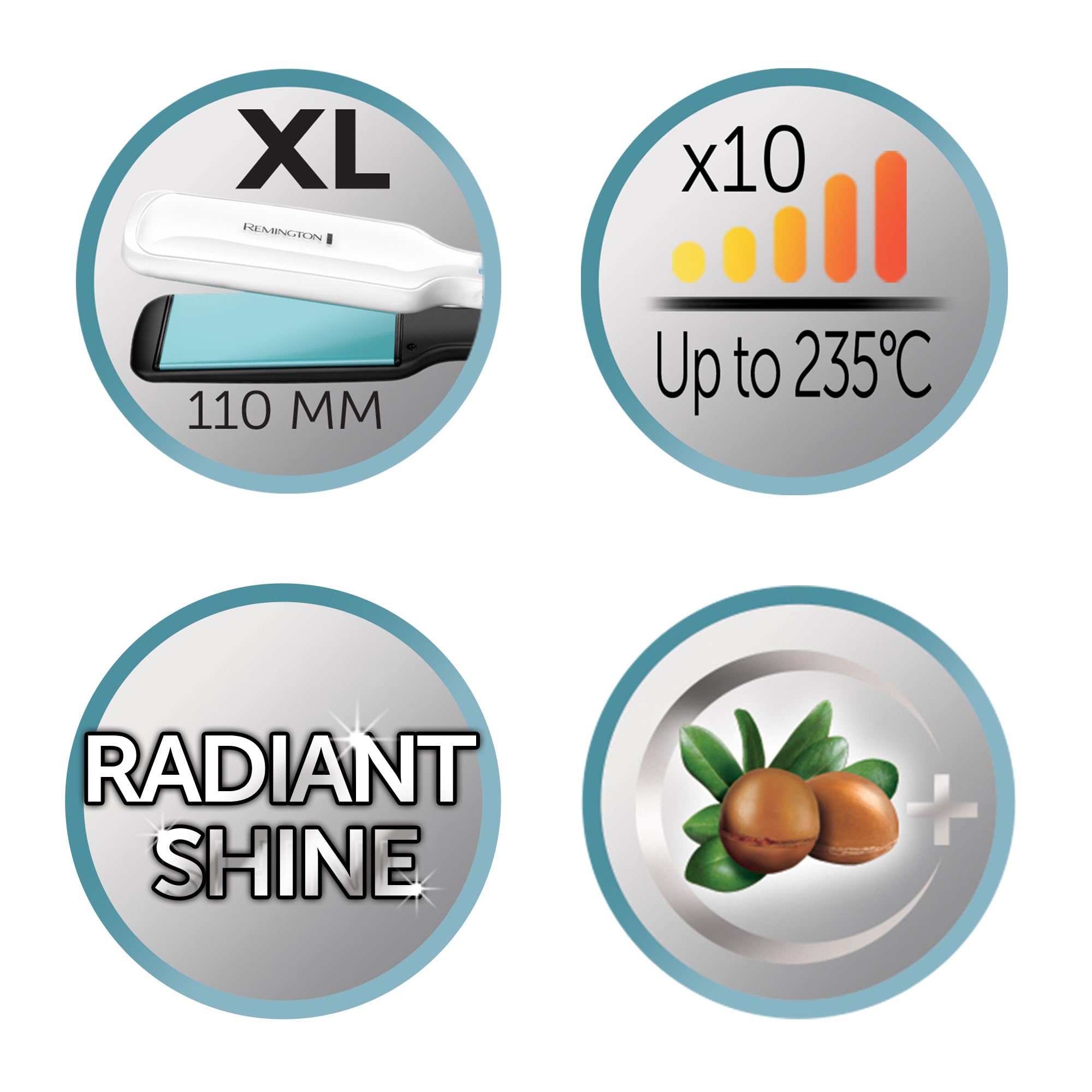 Remington Glätteisen breit Shine Therapy (hochwertige Keramikbeschichtung angereichert mit Mikrowirkstoffe für mehr Glanz -marokkanisches Arganöl & Vitamin E) LCD-Display, 150-230°C, Haarglätter S8550