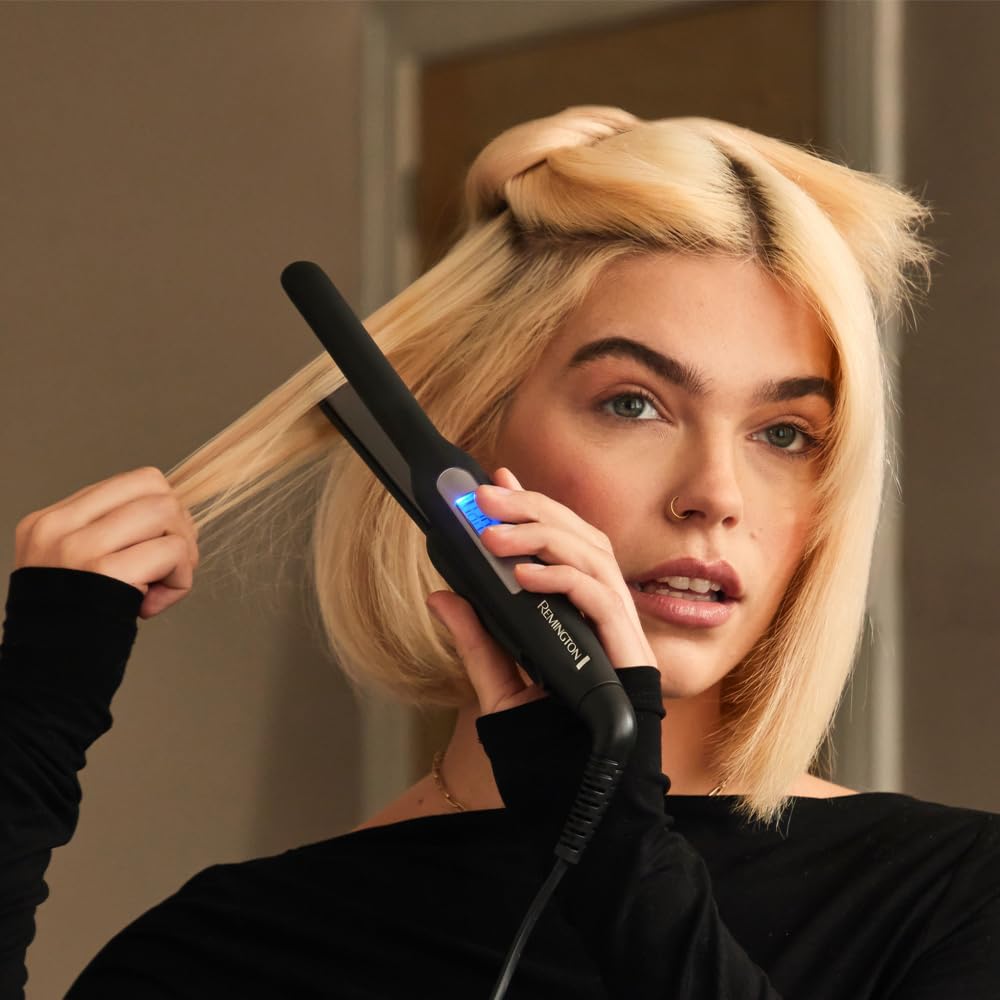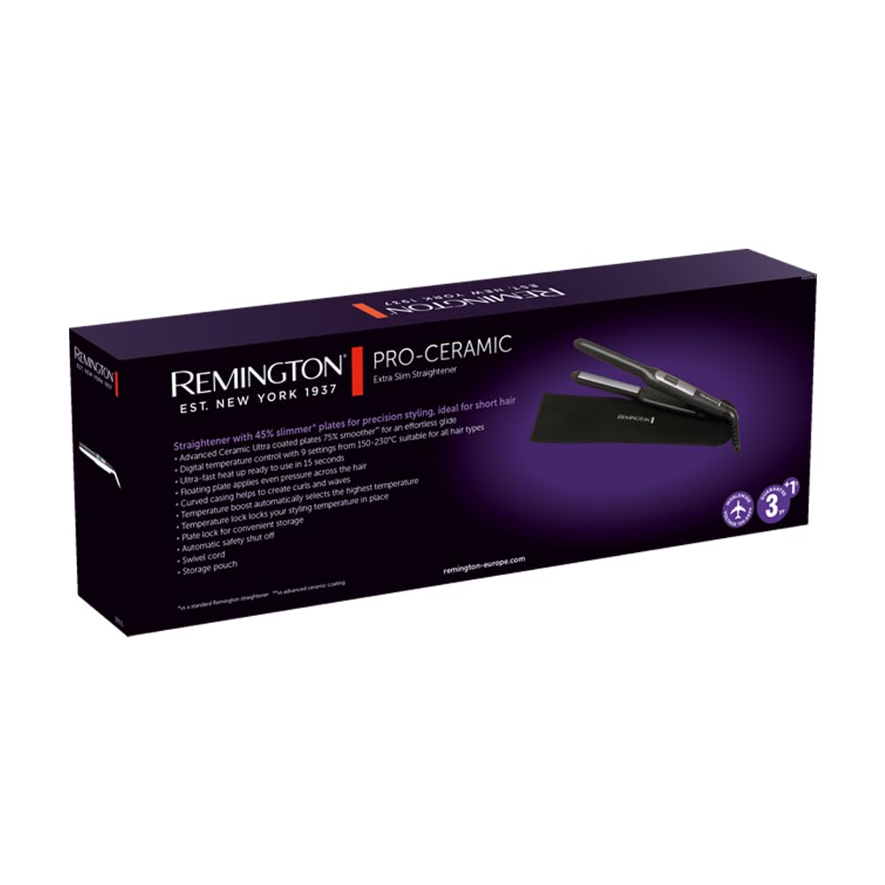 • EXTRA SCHMALEN STYLINGPLATTEN - Präzises Styling für kurzes Haar, Pony, Bart, Pixie Cut oder Bob mit dem Remington Pro-Ceramic Extra-Slim Haarglätter, der 45 % schmaler ist als die Standardplatten (im Vergleich zu Standard Remington Glätteisen).