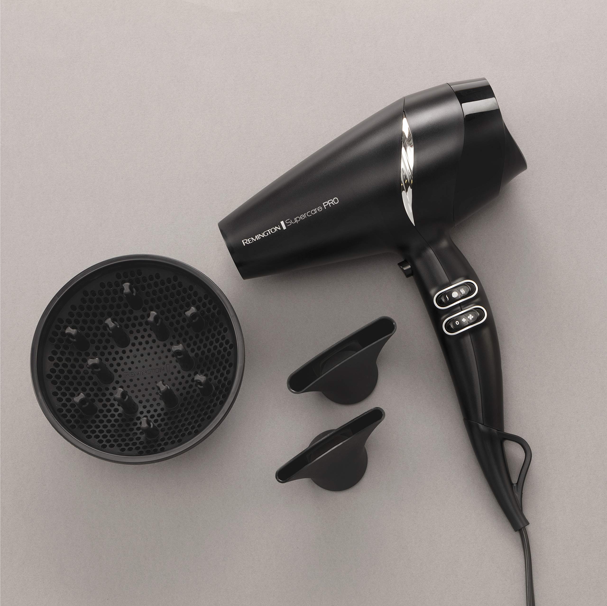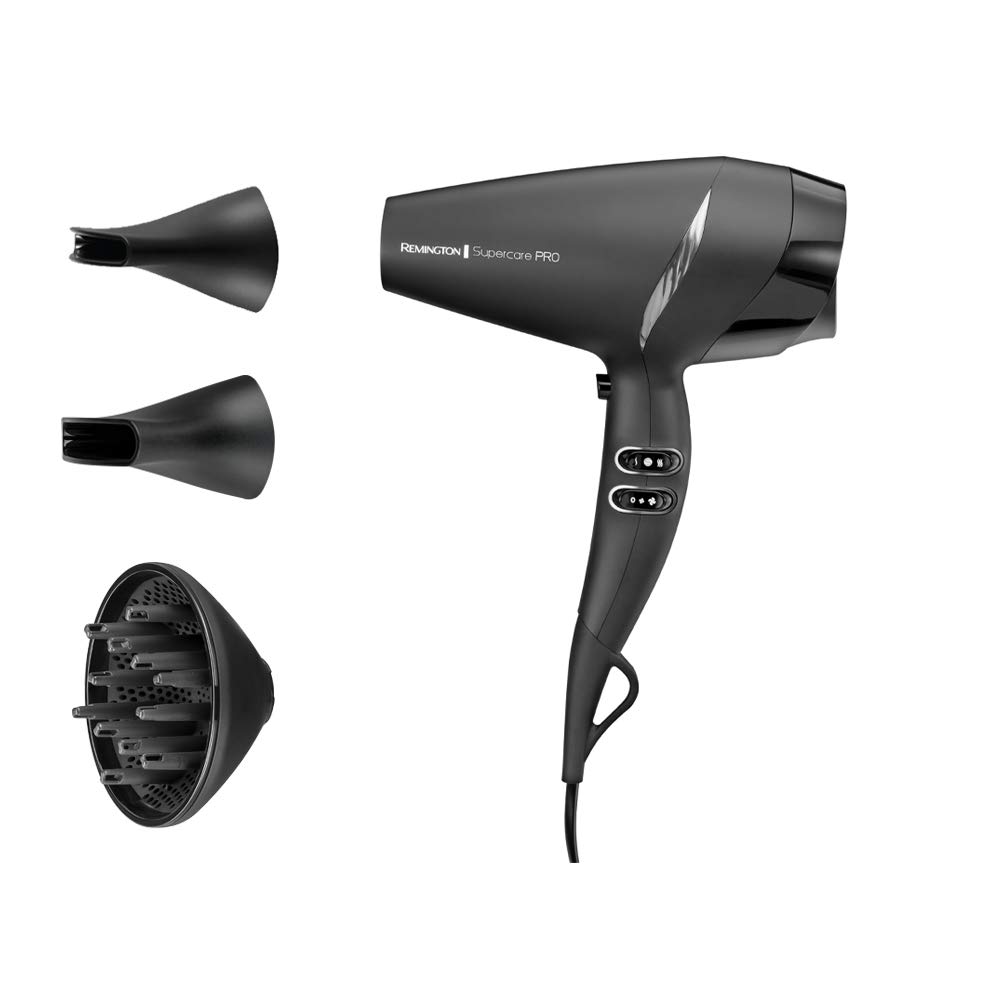 Remington Haartrockner Profi Ionen [leistungsstark & seitliche Profi-Bedienung] SupercarePro Technologie (2200W, 130km/h, 3 Stylingaufsätze, langlebiger Friseur AC-Motor) AC7250 [Amazon Exklusiv]